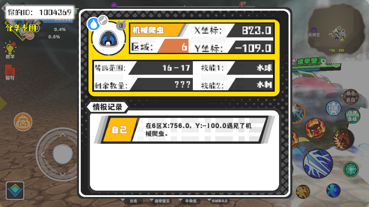 幸运时刻分享! 【魔物异常出没】1月16日下午9点 - 机械爬虫【强度0】 【6区】 【X:823.0, Y:-109.0】#超数据世界