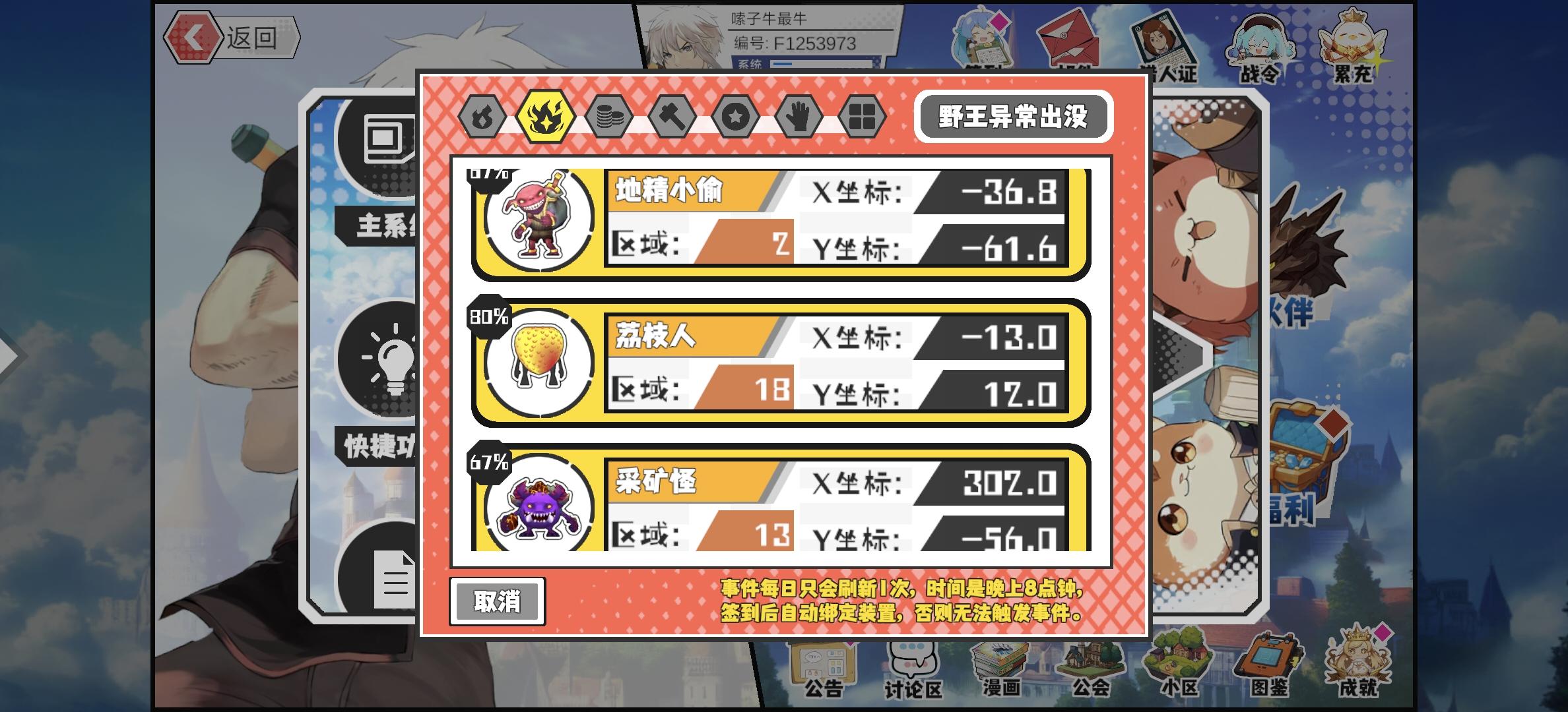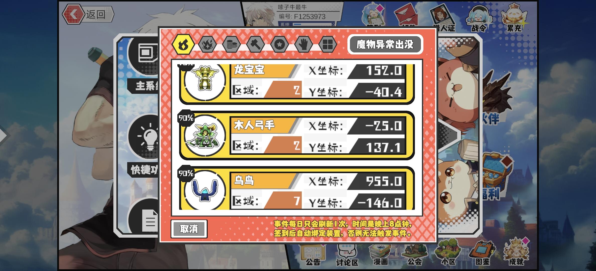 幸运时刻分享! 【魔物异常出没】1月18日上午11点 - 木人弓手【强度2】 【2区】 【X:-22.8, Y:122.0】#超数据世界