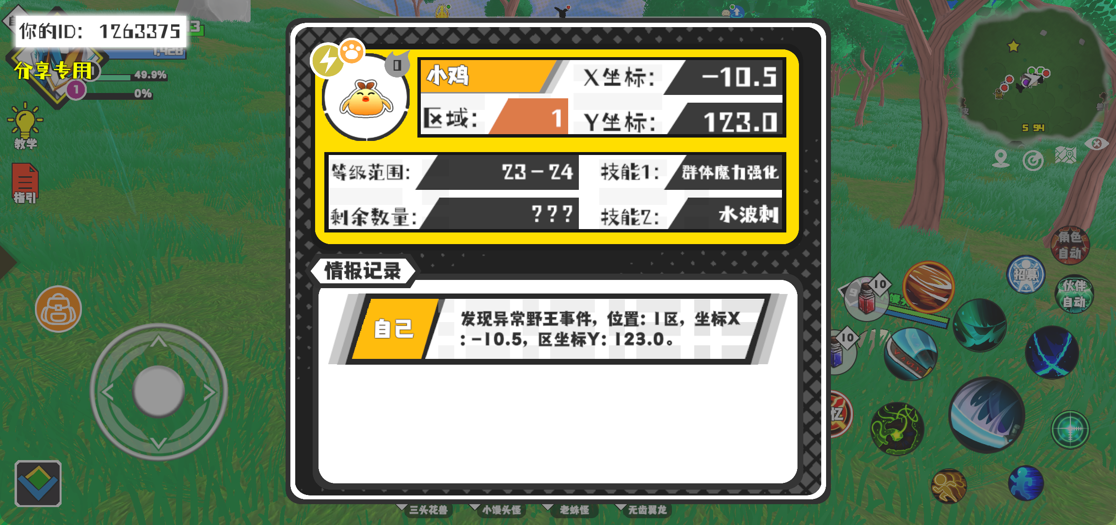 幸运时刻分享! 【野王异常出没】1月20日下午12点 - 小鸡【强度0】 【1区】 【X:-10.5, Y:123.0】#超数据世界