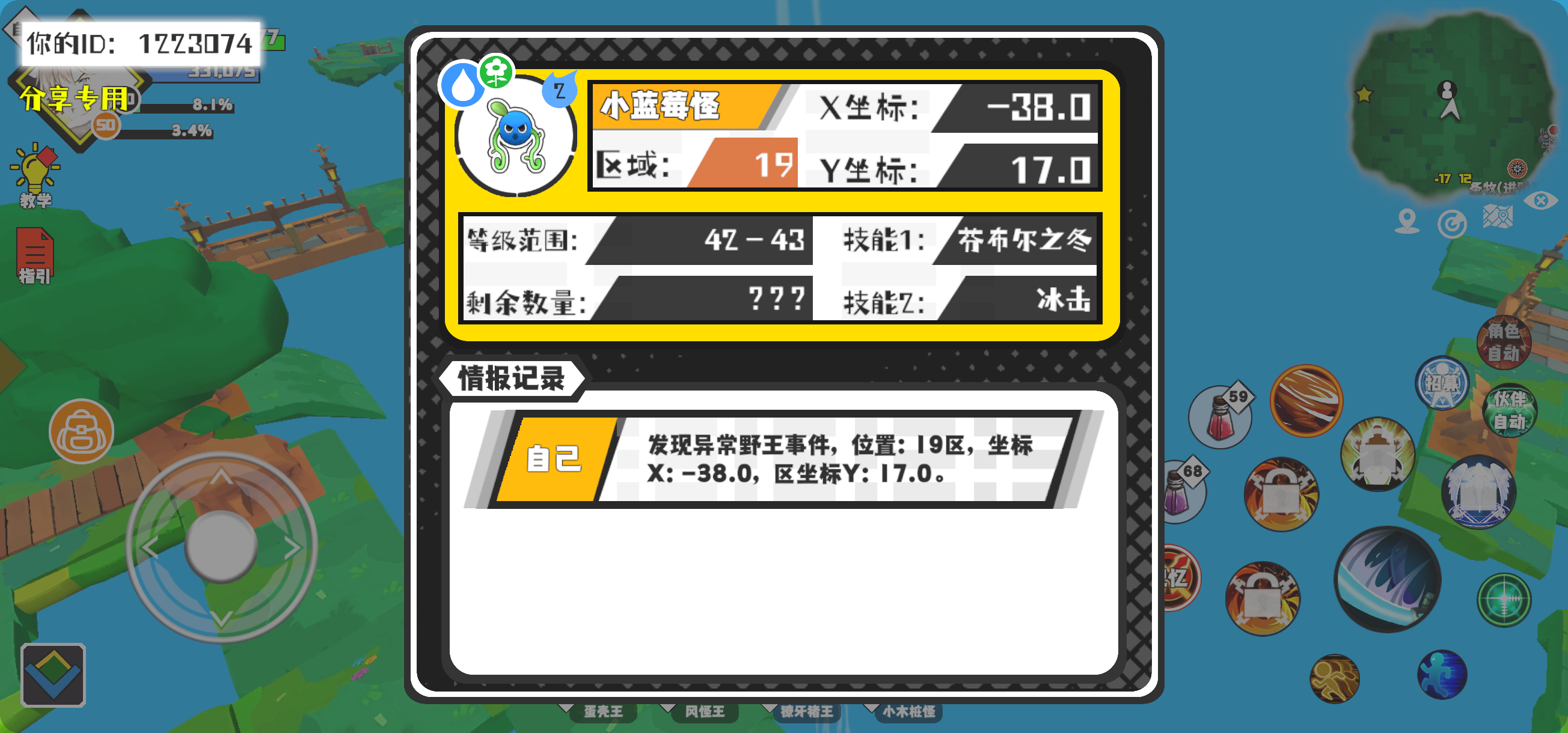 幸运时刻分享! 【野王异常出没】1月21日上午11点 - 小蓝莓怪【强度2】 【19区】 【X:-38.0, Y:17.0】#超数据世界