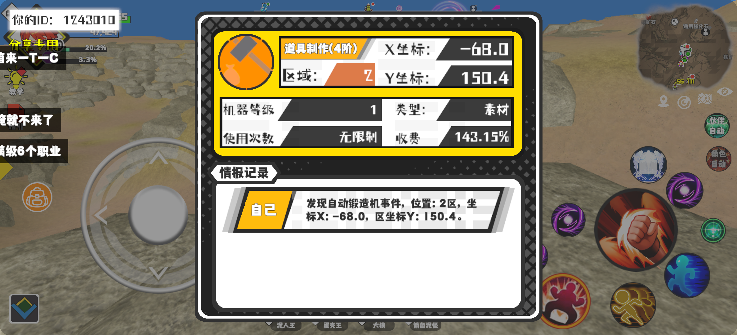 幸运时刻分享! 【自动锻造机】1月21日下午10点 - 道具制作(4阶)【1级机器】 【2区】 【X:-68.0, Y:150.4】#超数据世界