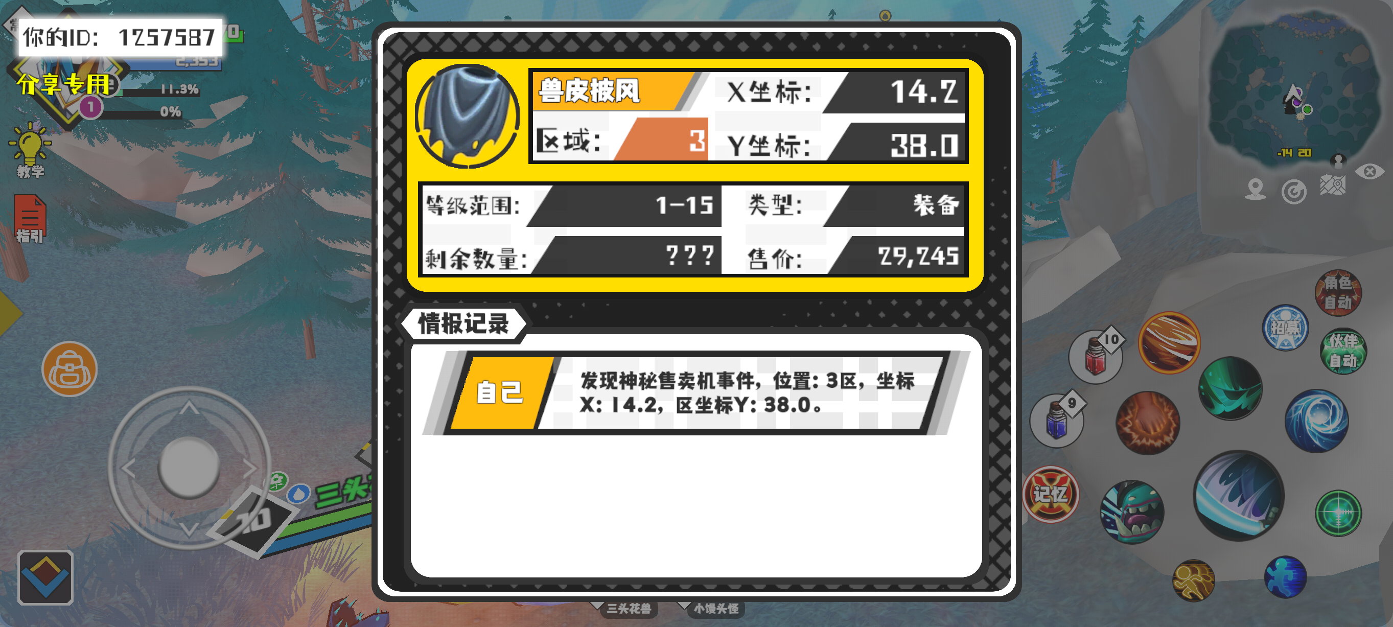 #超数据世界 幸运时刻分享! 【神秘售卖机】12月16日下午6点 - 兽皮披风【1-15级 】【稀有度:神秘】 【3区】 【X:14.2, Y:38.0】