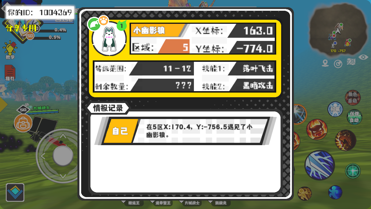 幸运时刻分享! 【魔物异常出没】1月22日上午9点 - 小幽影狼【强度1】 【5区】 【X:163.0, Y:-774.0】#超数据世界