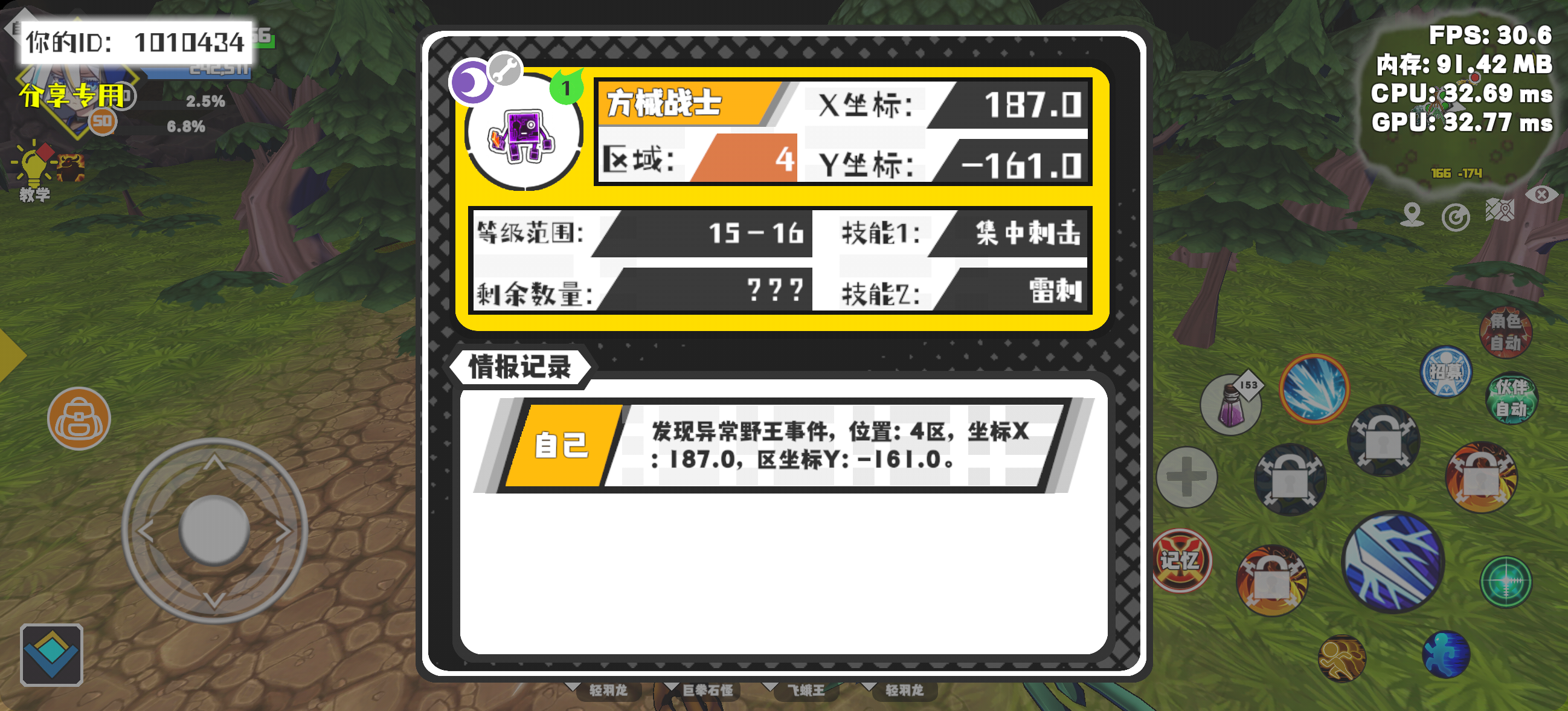 幸运时刻分享! 【野王异常出没】1月22日下午7点 - 方械战士【强度1】 【4区】 【X:187.0, Y:-161.0】#超数据世界