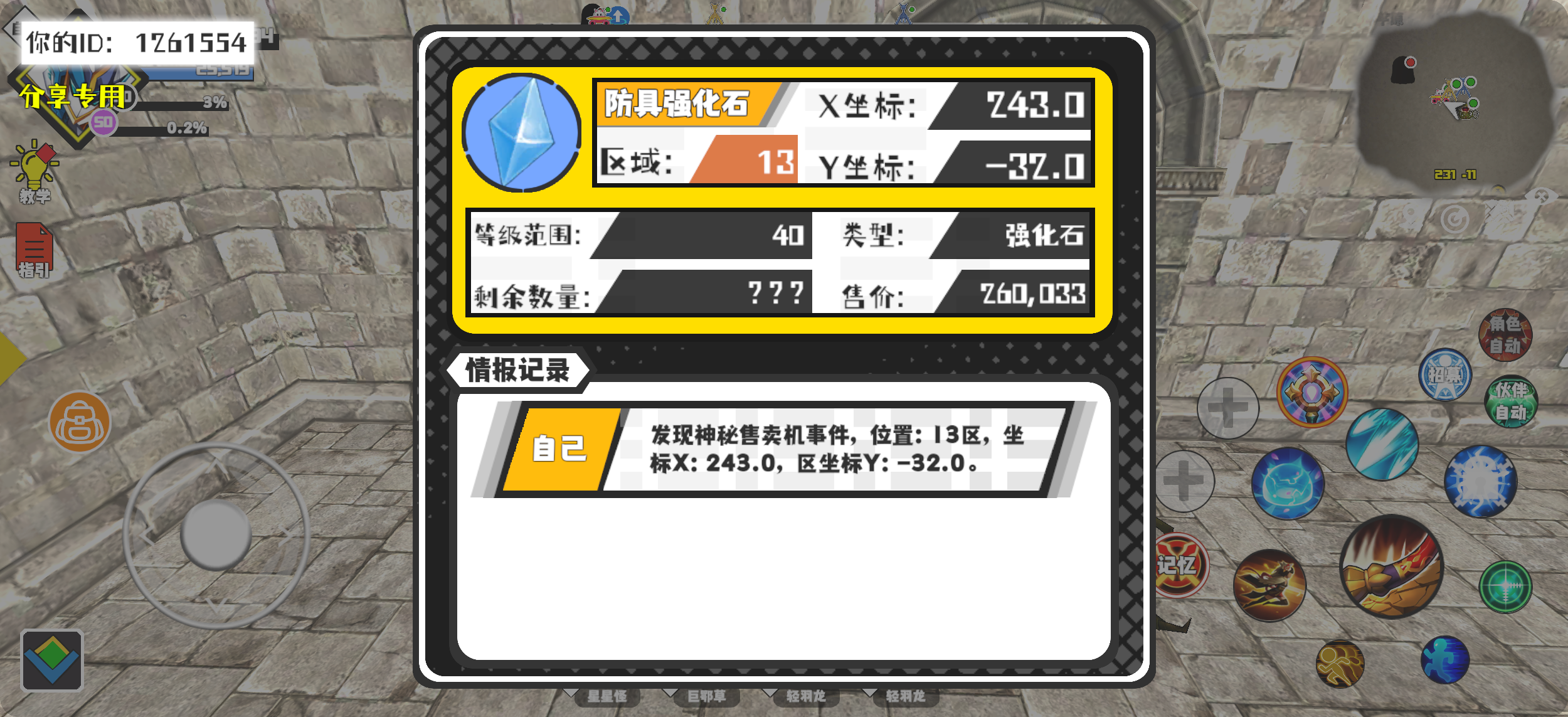 #超数据世界 幸运时刻分享! 【神秘售卖机】1月22日下午9点 - 防具强化石【40级 】【稀有度:稀有】 【13区】 【X:243.0, Y:-32.0】