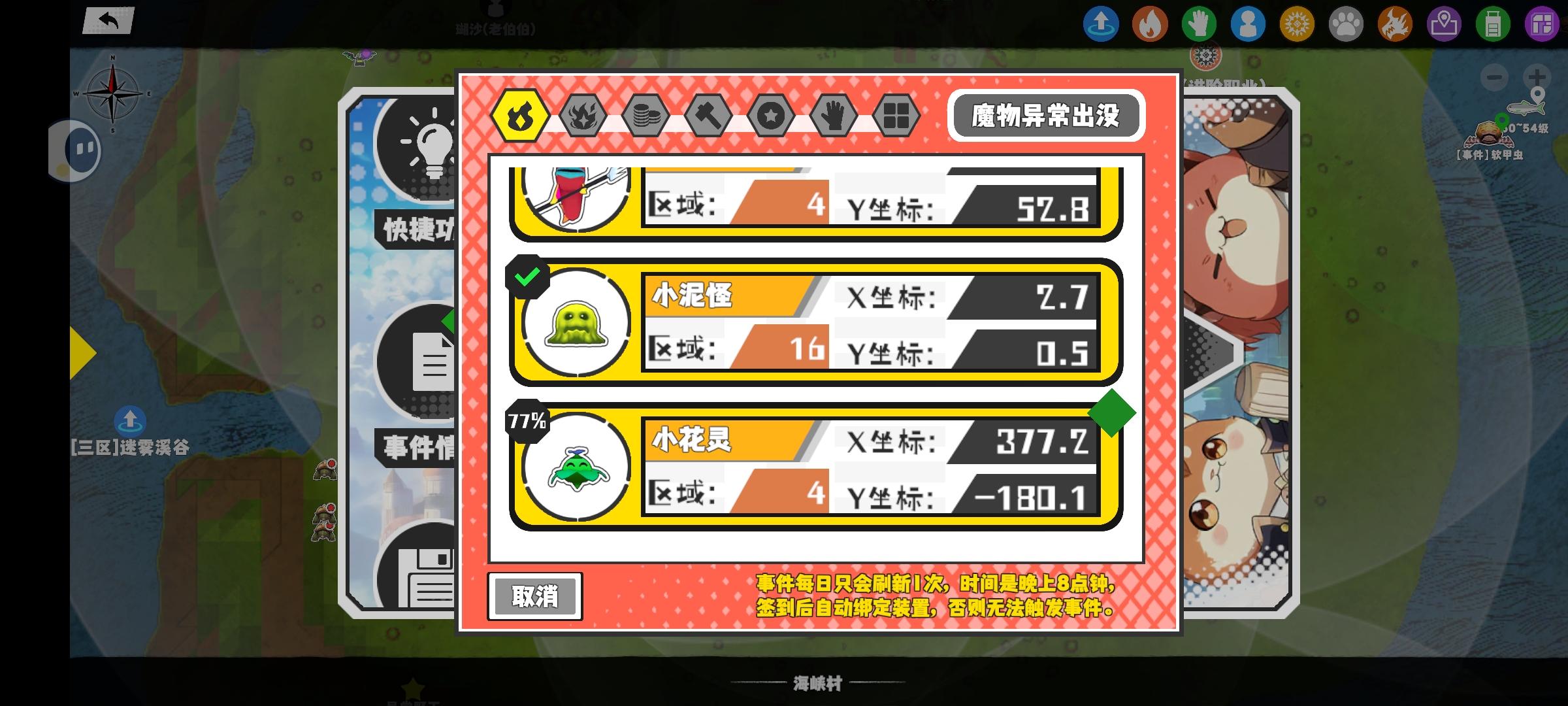 #超数据世界 幸运时刻分享! 【魔物异常出没】1月23日下午1点 - 闪蛛怪【强度1】 【4区】 【X:345.0, Y:-36.0】