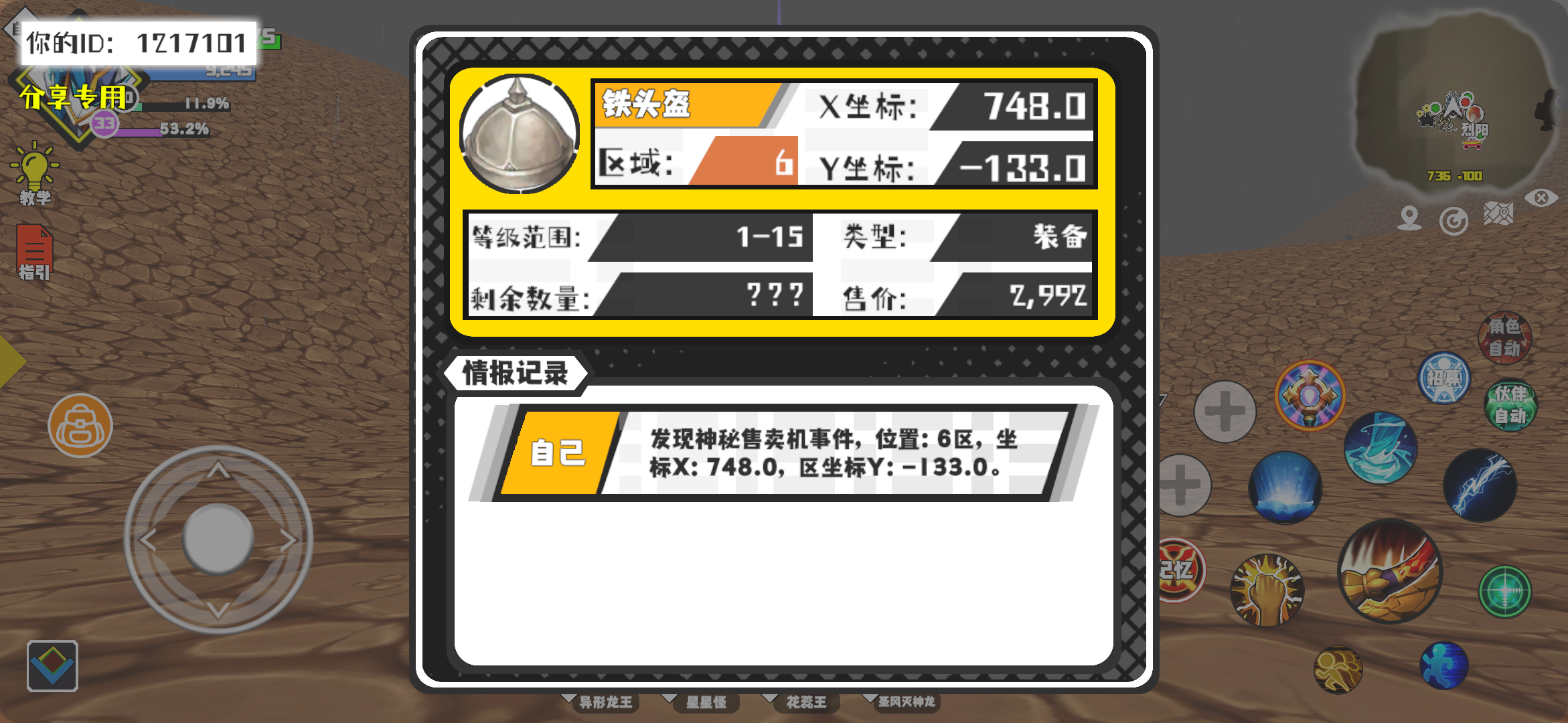 幸运时刻分享! 【神秘售卖机】1月23日下午5点 - 铁头盔【1-15级 】【稀有度:精良】 【6区】 【X:748.0, Y:-133.0】#超数据世界
