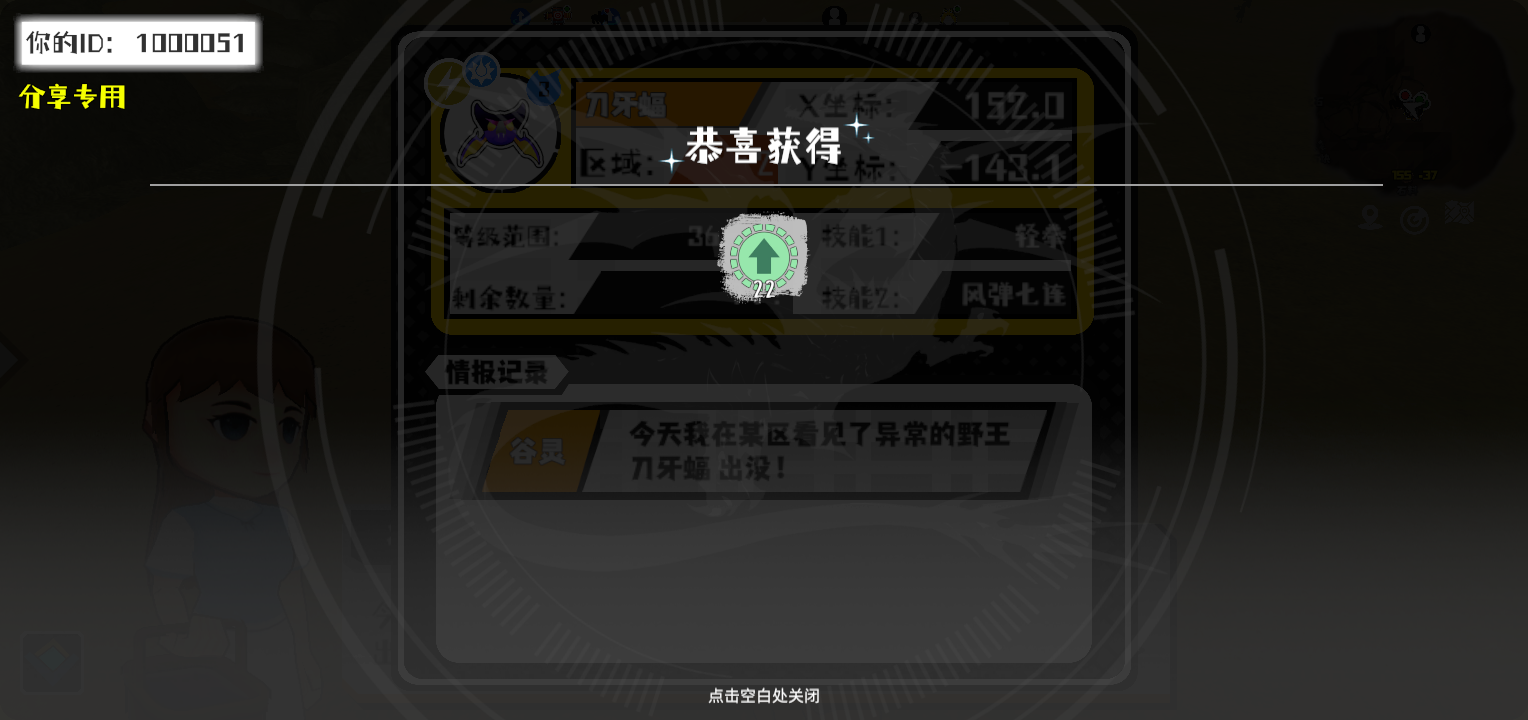 幸运时刻分享! 【野王异常出没】1月25日下午12点 - 刀牙蝠【强度3】 【2区】 【X:152.0, Y:-143.1】#超数据世界