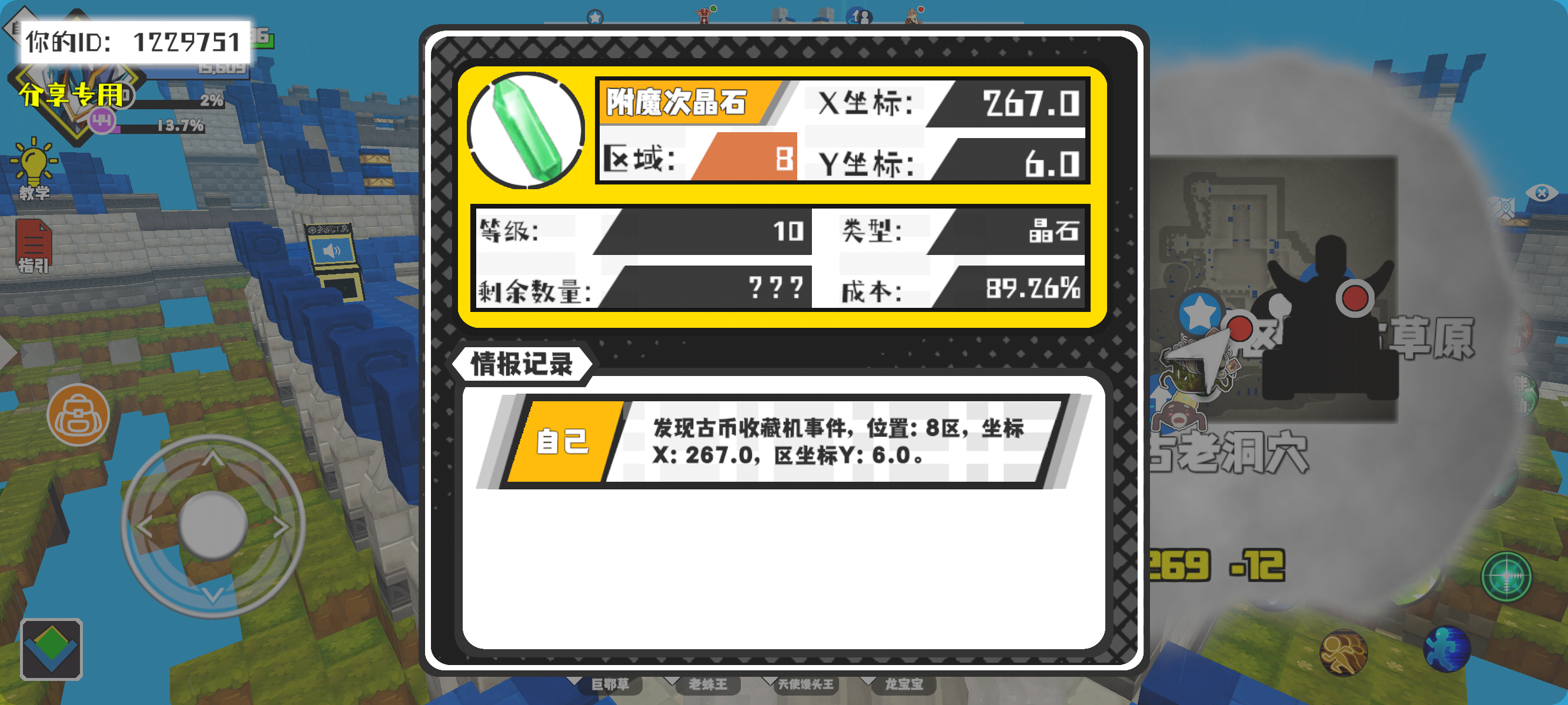 幸运时刻分享! 【古币收藏机】1月25日下午11点 - 附魔次晶石 【8区】 【X:267.0, Y:6.0】#超数据世界
