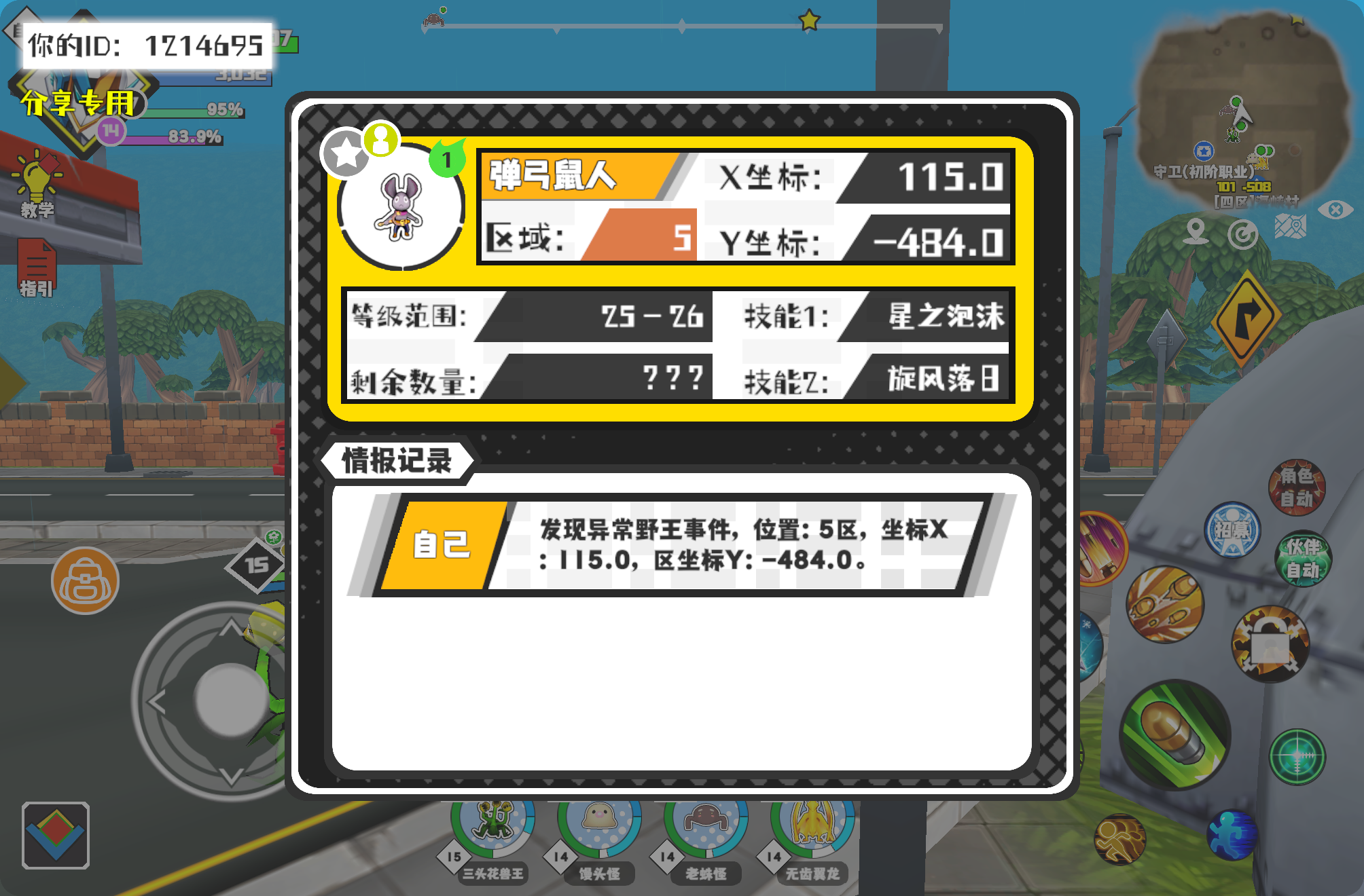 #超数据世界 幸运时刻分享! 【野王异常出没】1月27日下午12点 - 弹弓鼠人【强度1】 【5区】 【X:115.0, Y:-484.0】