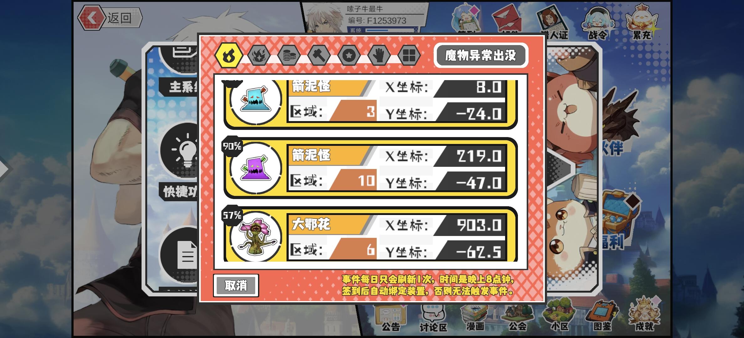 幸运时刻分享! 【魔物异常出没】12月16日下午10点 - 小机械龙【强度0】 【2区】 【X:35.0, Y:-35.1】#超数据世界