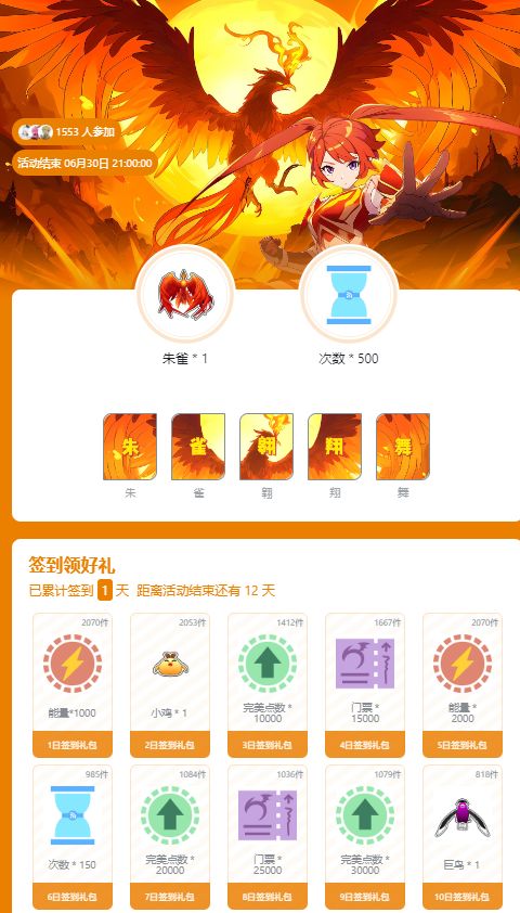 朱雀翱翔舞空 签到活动 抽神兽