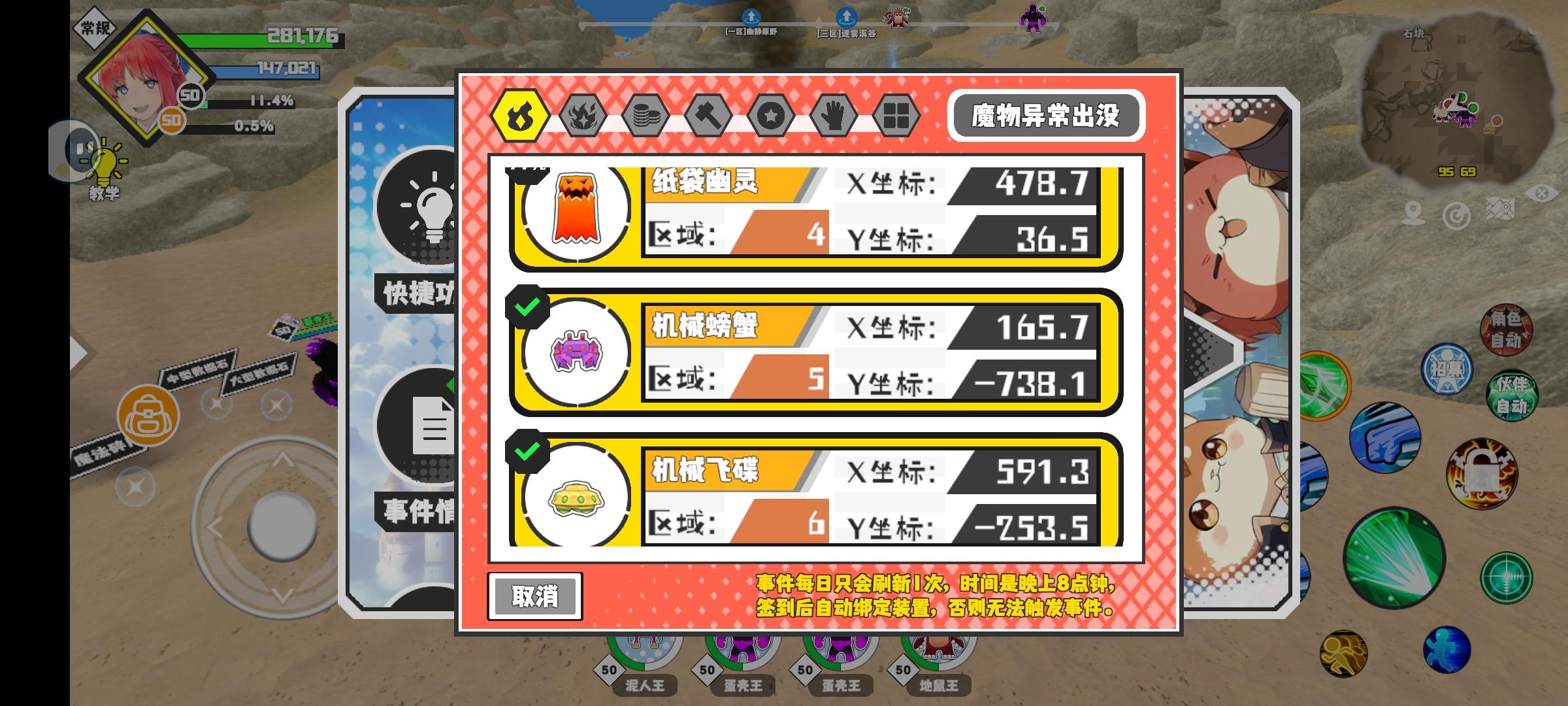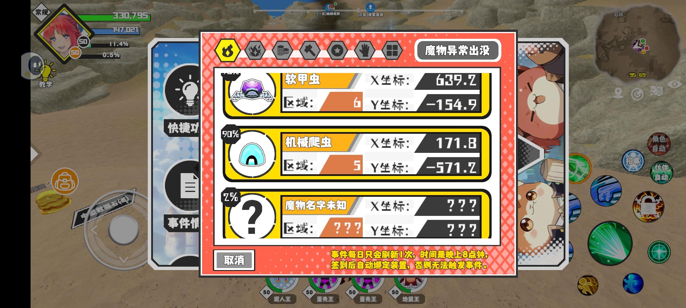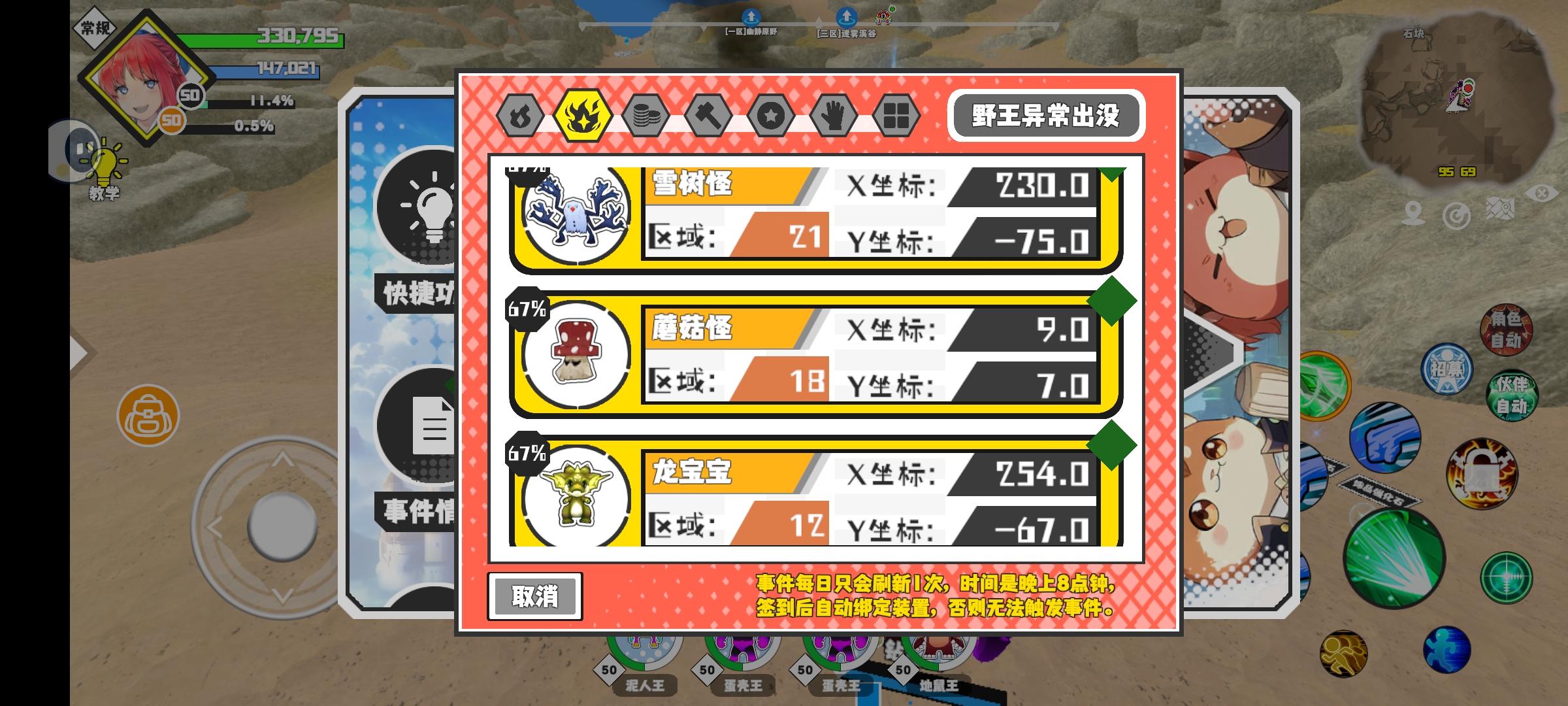 幸运时刻分享! 【魔物异常出没】12月19日下午2点 - 尖头菇【强度2】 【9区】 【X:237.0, Y:-8.0】#超数据世界