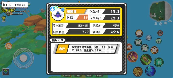 #超数据世界 幸运时刻分享! 【野王异常出没】3月22日下午8点 - 碧影蜂【强度2】 【19区】 【X:15.0, Y:23.0】