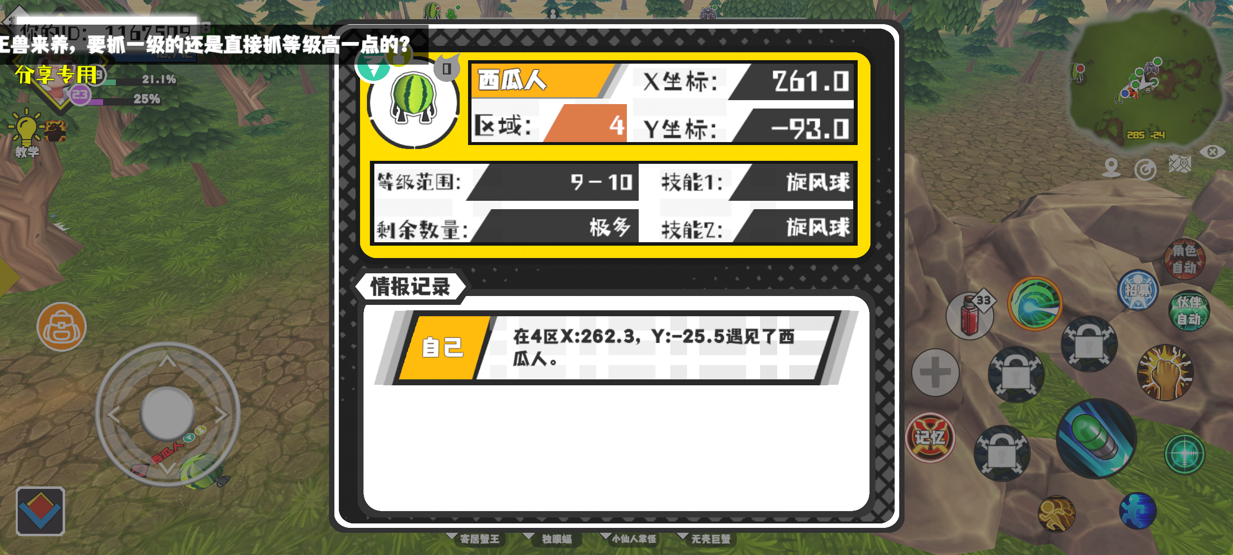 幸运时刻分享! 【魔物异常出没】12月21日下午7点 - 西瓜人【强度0】 【4区】 【X:261.0, Y:-93.0】#超数据世界