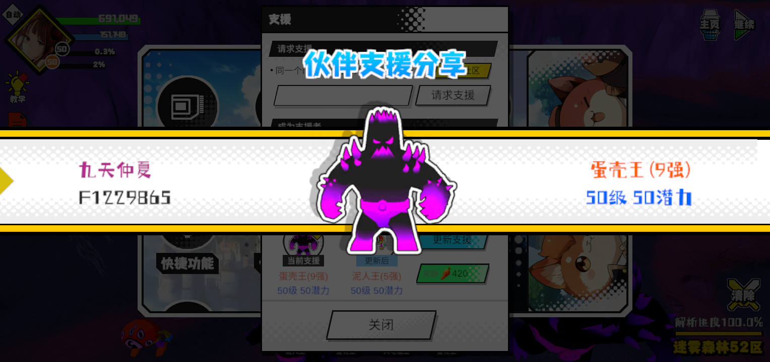 支援者:一念执着(F1099111)如果遇到困难,可以召唤我的宠物帮忙,召唤方法是进入地图后点击左下角的手机功能>支援>输入【F1099111】>就可以召唤我的宠物!我的宠物是蛋壳王(9强)50级 50潜力技能1:黑魔破技能2:黑魔破技能3:黑魔破技能4:黑魔破智慧配点:245初阶职业:鬼咒进阶职业:海神#超数据世界