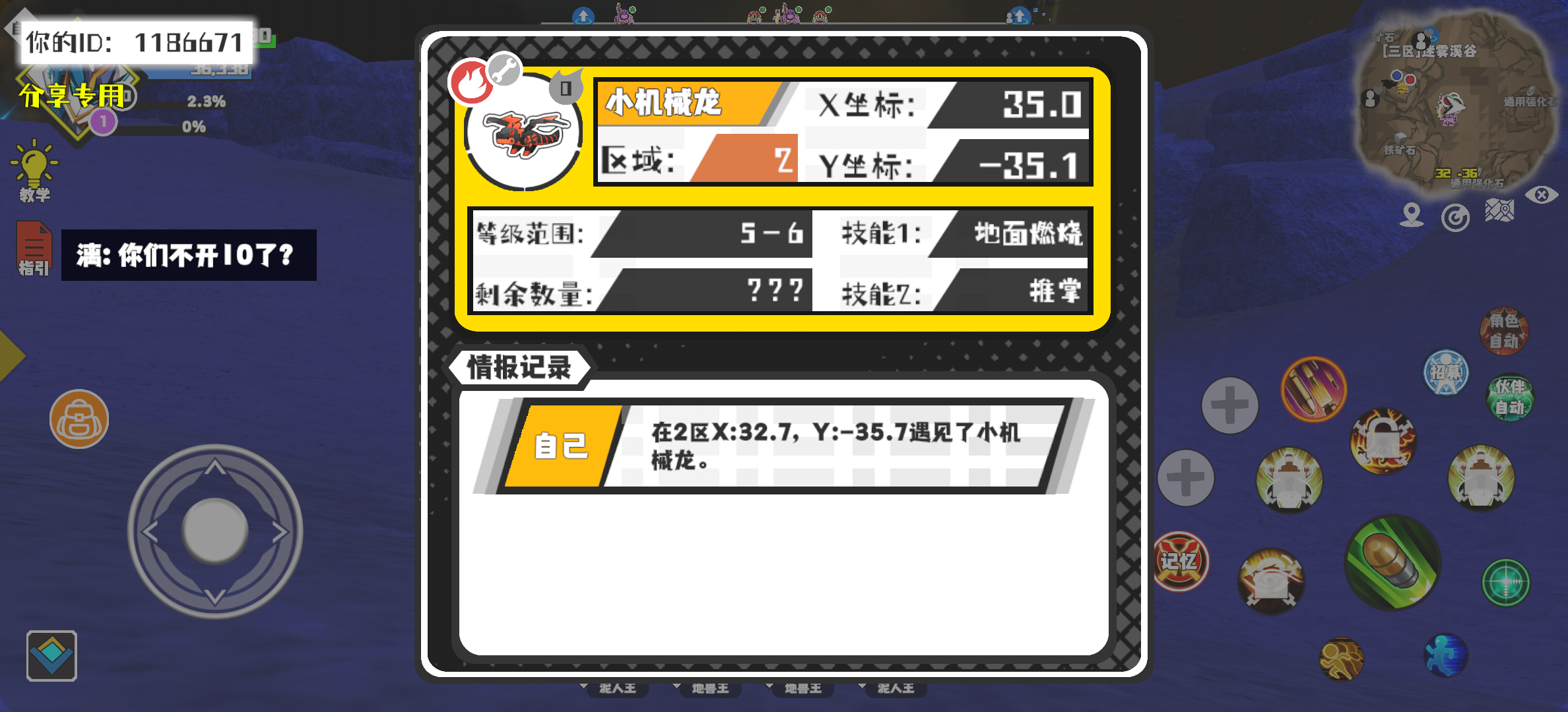 幸运时刻分享! 【魔物异常出没】12月16日下午10点 - 小机械龙【强度0】 【2区】 【X:35.0, Y:-35.1】#超数据世界