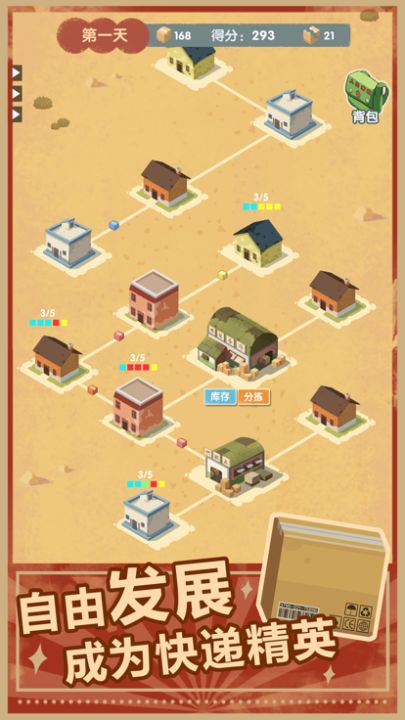 玩家将扮演一个快递公司的经营者,负责整个城市快递线路的规划设计。游戏在设定上需要玩家利用有限的资源建立枢纽,来合理的规划快递线路;同时可以进行对枢纽和快递中心升级,提升储量和快递分发速度。