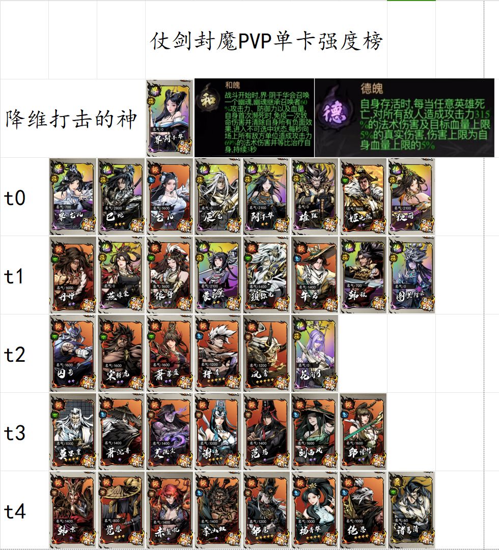 PVP单卡强度榜-界阴千华版