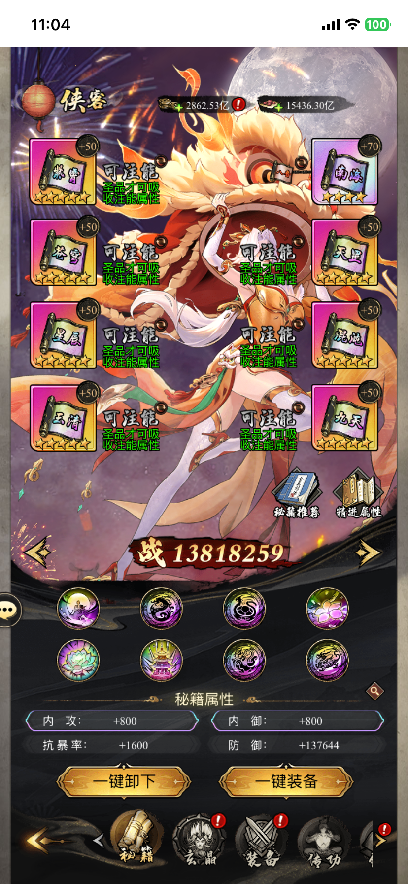 2024年11月入坑至今,回首2个月以来走过的弯路及游戏思路,整理后给萌新一些建议,少走些弯路。一、开服1.开服第一天抽龙儿,如未抽到果断换服。2.在无绝品侠客前龙儿主C,所有资源配给龙儿,其他队友谁星高用谁,龙儿满星需28个左右。3.可以利用回退,再升级侠客等级及秘籍的升级、升星,反复刷开服阶段限时任务。侠客任务、玄晶任务、神兵任务、秘籍任务(忘记名称了)。4.前期队伍:龙儿(主C)+