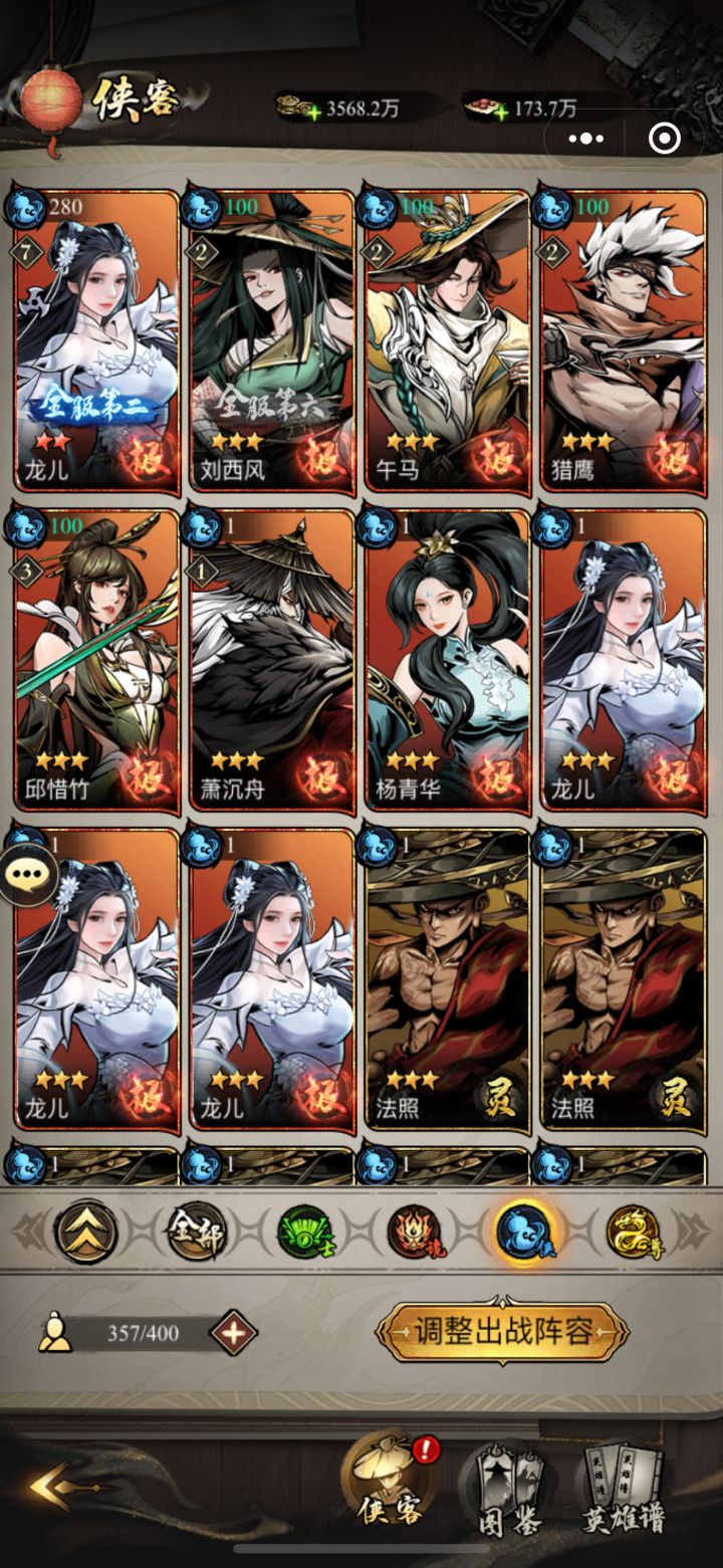 玩了几天,因为没有参加内测,本来不打算写的,怕误导新手,可看清一色的让练龙儿,觉得还是说点什么比较好,说错了希望各位大佬指点,但希望嘴下留情别喷我哈……我目前练的也是龙儿,下面有图有真相,没办法,清一色龙儿……首先,卡牌游戏都讲一个前中后期,这个大家都知道,什么四系,神魔,几加几的阵容羁绊,但这个游戏没有这些,目前看,也就是绝品算是大后期,而前期虽然是过渡,但也应该考虑一下后期发展不是,由于龙