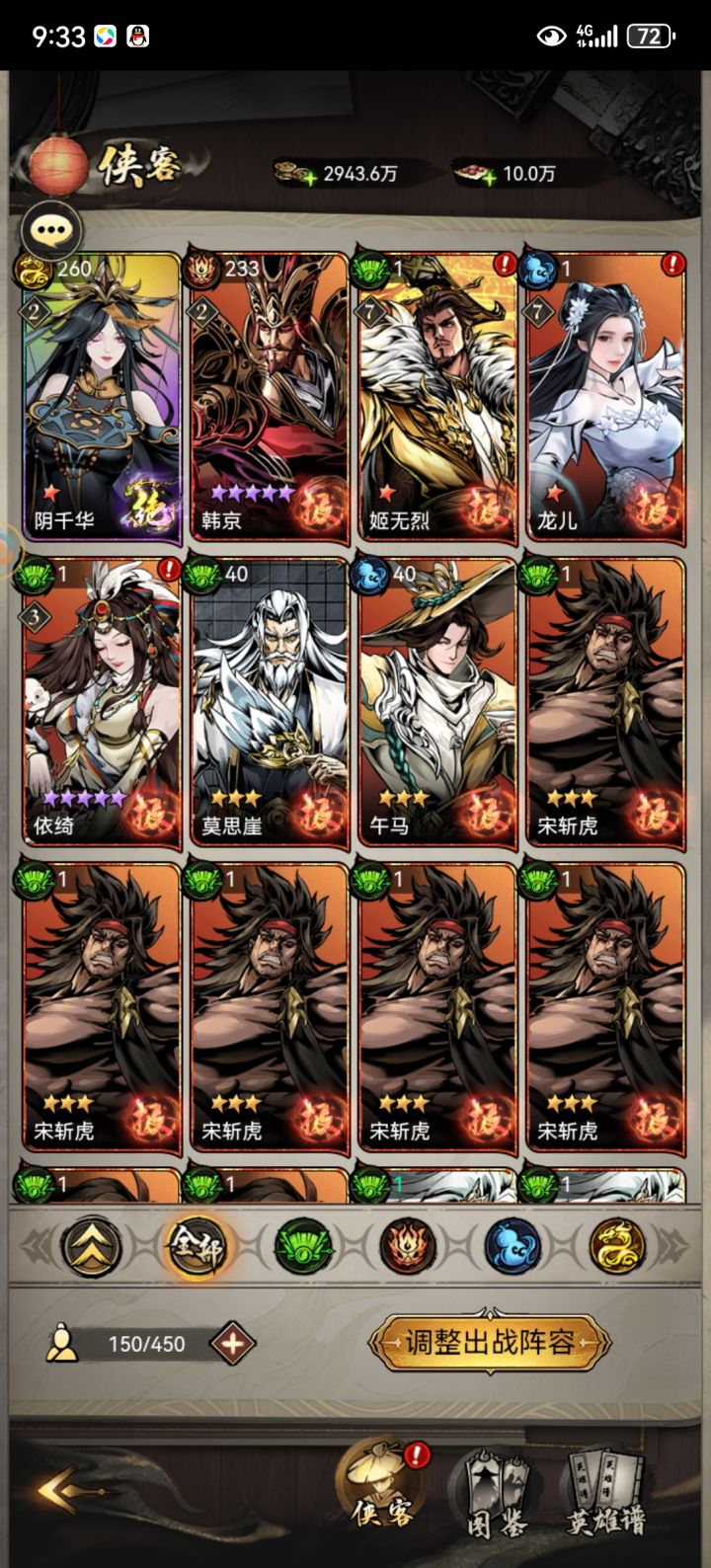 #仗剑周年攻略 如题,这是一篇写给纯新手的攻略,老鸟就不用看了。更详细的攻略,建议去找南往大神的帖子。这里只说一些他没提到,或者是他认为不值一提,但作为第一次玩的人会纠结的点。一、侠客等级:尊>极(核心)>极>灵>卓>良。卓和良没用,把自动放逐勾上。灵一定不要放逐,重要的事情说三遍,一键合成五星,后面很缺狗粮的。这时你会遇到一个难题,总提示你包袱满了,抽不了。仔细找,包袱可以用少量元宝扩充。二