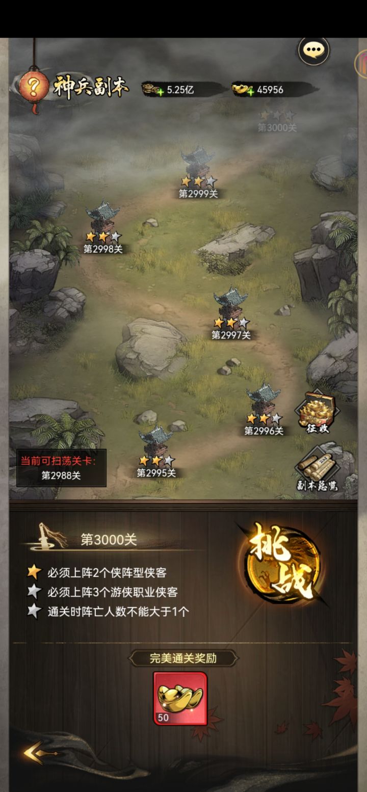 阵容:龙儿,姬无烈,丹增,依绮,莫思崖。四个士,也是无语。。。。①关于武盟,看攻略玩的,根据大佬建议,建了一个只有自己的盟,今天通关100关。第99关囚影难过,换了刘西风才打过去了。一关5个碎片,100关就是10个级。拿完奖励去了榜一的盟。那个搜索的地图奖励刚好都领了。明天会重置这个搜索。(图三)②关于刘西风,因为要养龙儿,前期吃了几张刘西风。现在后悔了。这个卡可以晕,打武盟很有用。满天赋