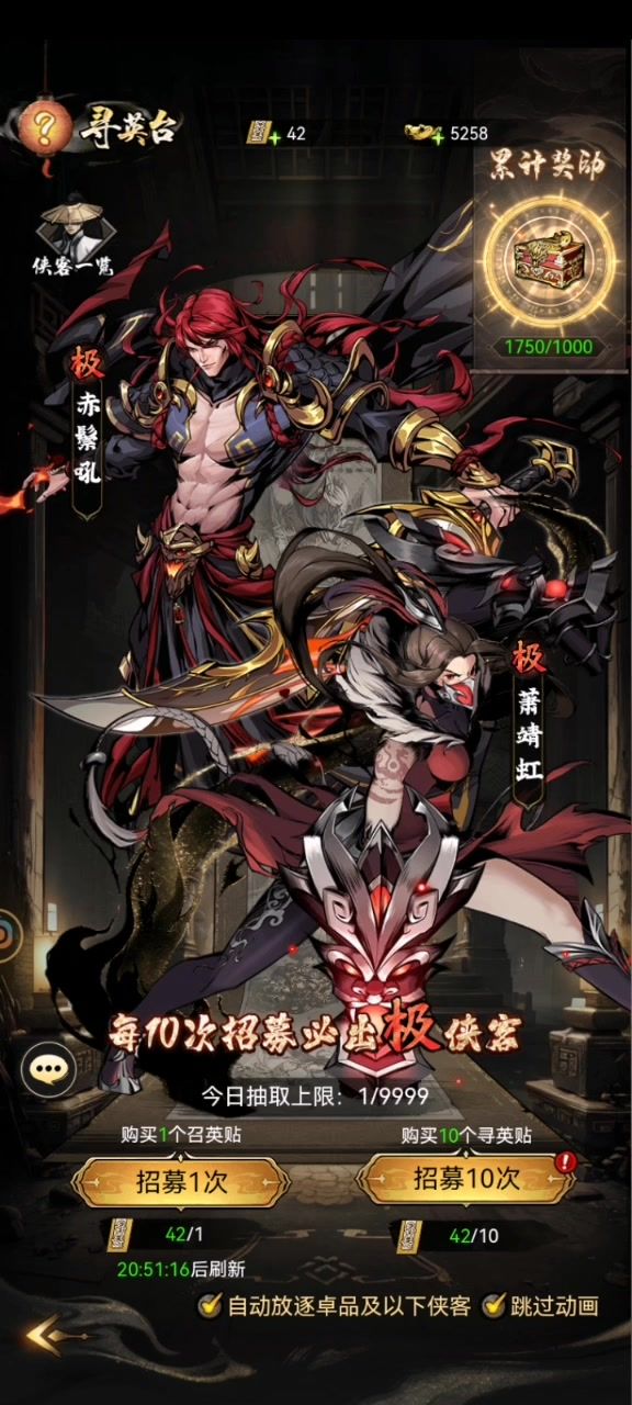暗黑风武侠动作卡牌!超多经典侠客角色选择!