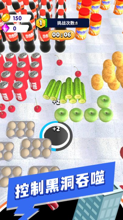 控制黑洞吞噬场景中的物品,吞噬使你快速成长,越来越强!