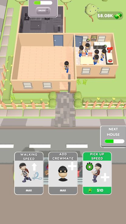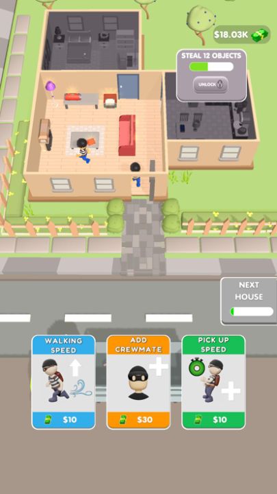 Get ready to become the ultimate thief in our addictive mobile idle game! In our game, you'll assemble a team of skilled thieves and use them to rob houses, collecting valuable items and cash along the way. Upgrade your thieves to increase their spee...