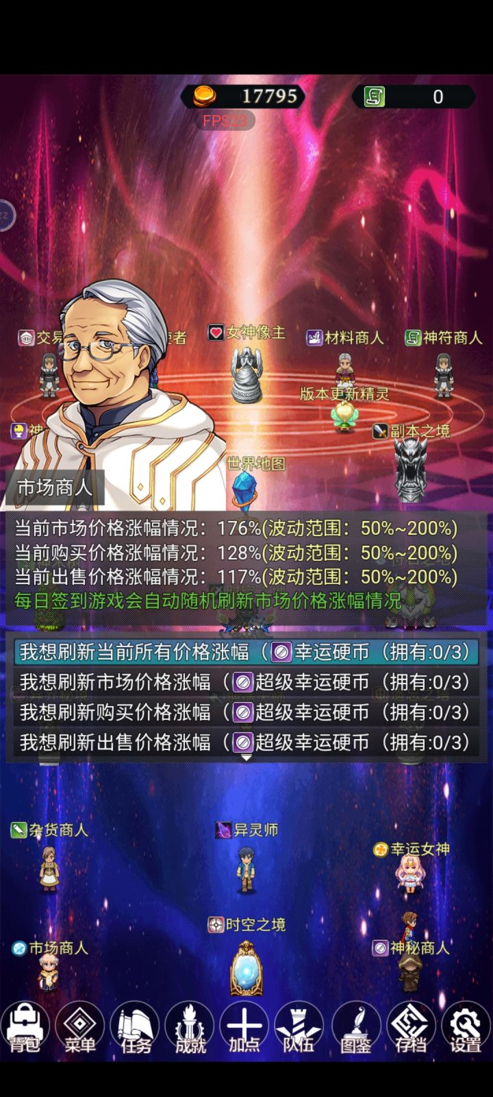新手小攻略神月神像:提升全队等级上限的建筑副本之境:进入副本刷装备品质盒、摇钱树树苗、或者其他道具神木树:可以用灵气兑换金币、或者去世界地图开启掉落装备或者魂印 并且去任意战斗场景战斗12次就会有概率获得所有建筑的升级材料的盒子 盒子包括小~超级的、品质越高开出的材料数量越多符石之地:专门获得符石装备的地方、符石分为1星、2星、3星、含有套装效果异界秘境:除魔秘境:可以刷异灵的合成材
