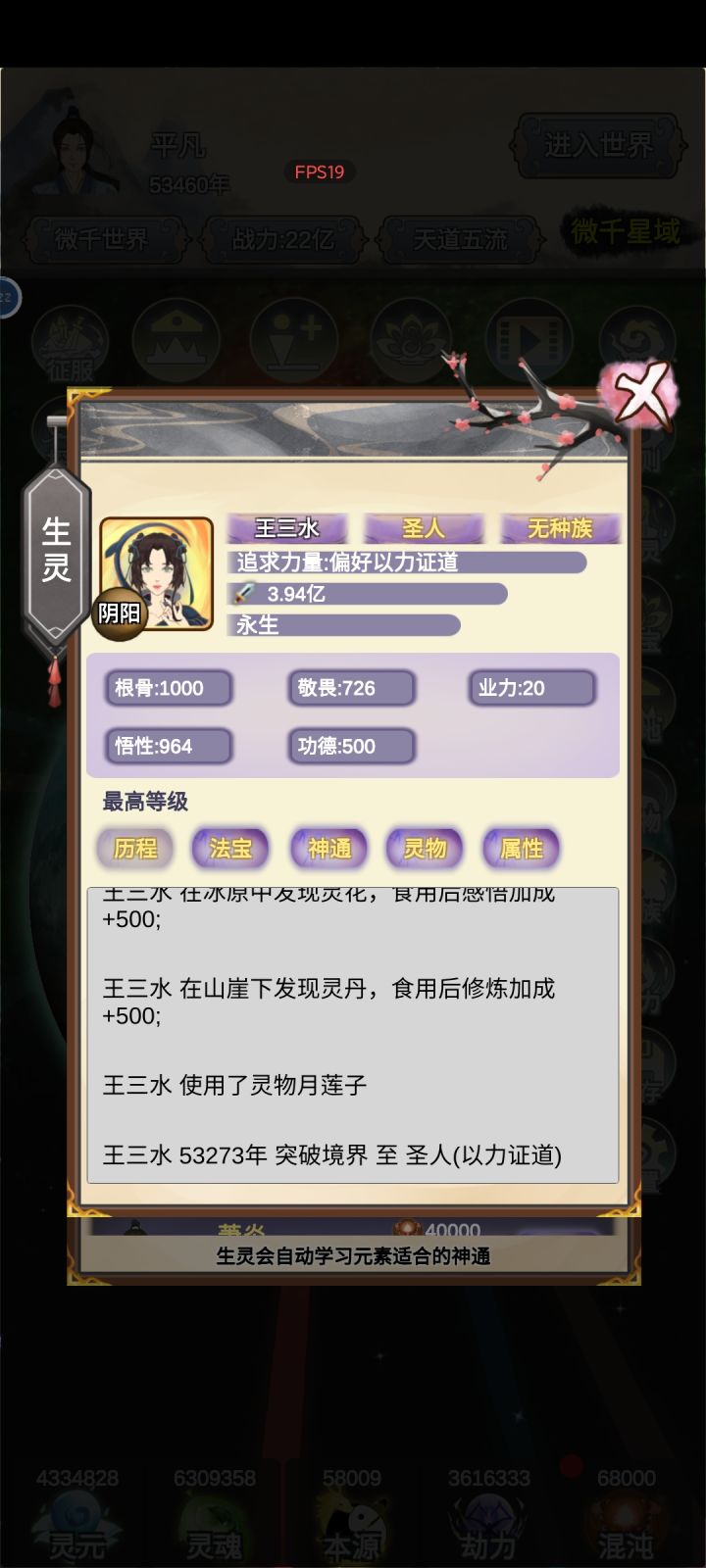 32093年,一直等着成圣,养了10个准圣,虽然玩了一天,挂机游戏还是忍不住看看,太肝了,这是随机成圣的咩。#浅评一下