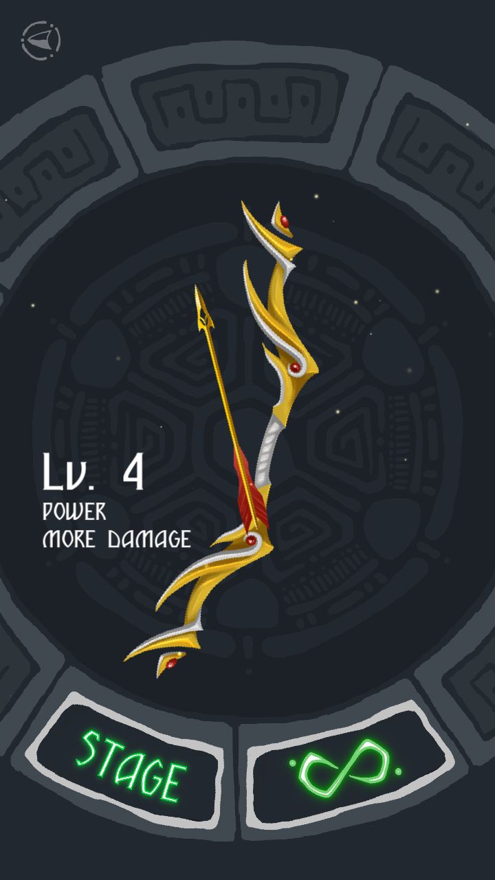 集齐之后合成的终极弓。所有属性于一身。会出现两个模式,一个爬多高,一个杀多些怪。两个关卡。爬多高。杀多些。