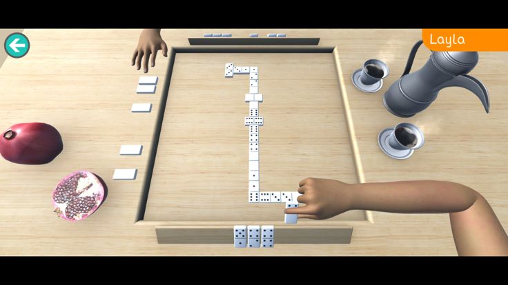 这款游戏提供了多米诺骨牌的流行版本。为了开始游戏,每个玩家选择7个,其他玩家放在一边。最高的两倍首先被放下。然后每个玩家轮流放置一个匹配的数字到该行的任何一端。如果一名球员不能放下他们的一个多米诺骨牌,那么他们必须从侧面挑选。如果边上没有剩下的话,玩家就会跳过。第一个放下所有多米诺骨牌的球员是赢家。如果两个玩家都不能放置一个,并且一边没有剩下,那么游戏以一个块结束,而胜者是最后放置一个多米诺骨牌的玩家。