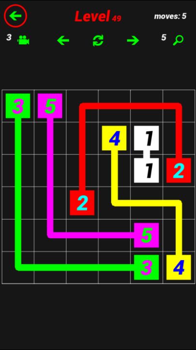 把相同颜色的点用线连接起来即可过关,线要经过棋盘上的每个空格且不可交叉。