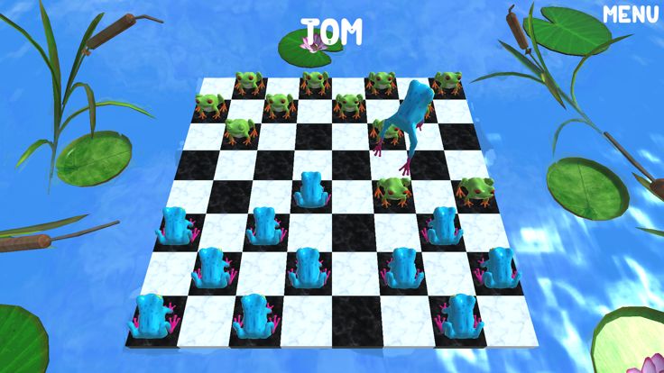 在互联网上,针对计算机,一位朋友或某人玩这个经典的游戏。 这个游戏使用的一般规则所以请了解他们在你玩之前。您必须在对角线方向,目的是捕获所有你的对手青蛙移动每个青蛙。一只青蛙只能继续前进直到它达到的终点在哪里它会成为国王,然后能向后移动。 如果你不喜欢被规则被迫捕获,然后你可以关闭此功能。对计算机播放时您可以选择取决于你是多么好的难度。