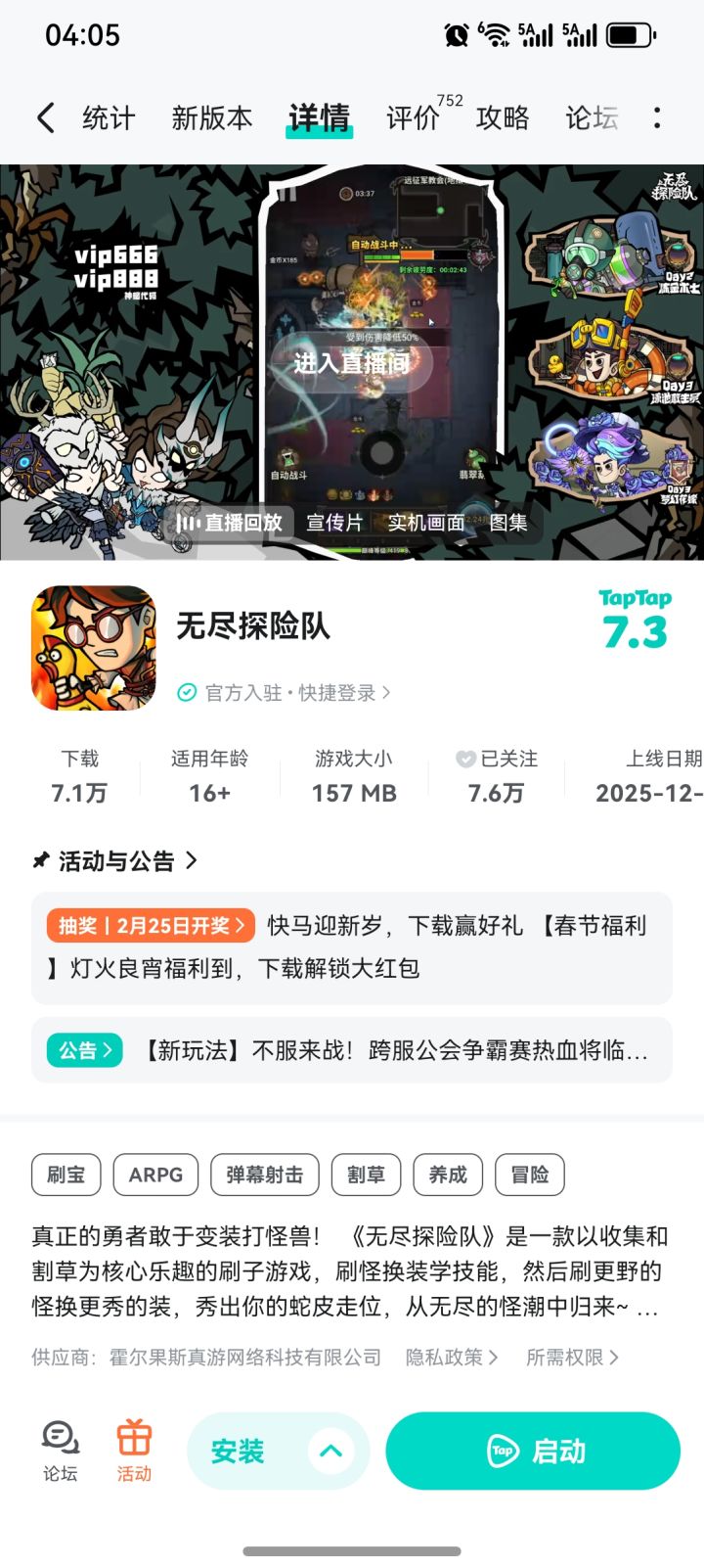 人在工位,天降富贵老登(坐等放假版)闪亮登场基瓦村的年味正在蓄力加载灯笼摇曳的酒馆热气腾腾老登派福利的手速,一直在线。【活动时间】即日起——2026年2月24日23:59【互动有奖】下载游戏,并截图分享评论区,即可参与抽取京东卡与周边礼品哦~②20元京东卡(5名)①50元京东卡(3名)②卡皮巴拉玩偶—偷感老登(3名)【参与方式】1.点击下方按钮下载《无尽探险队》2. 在