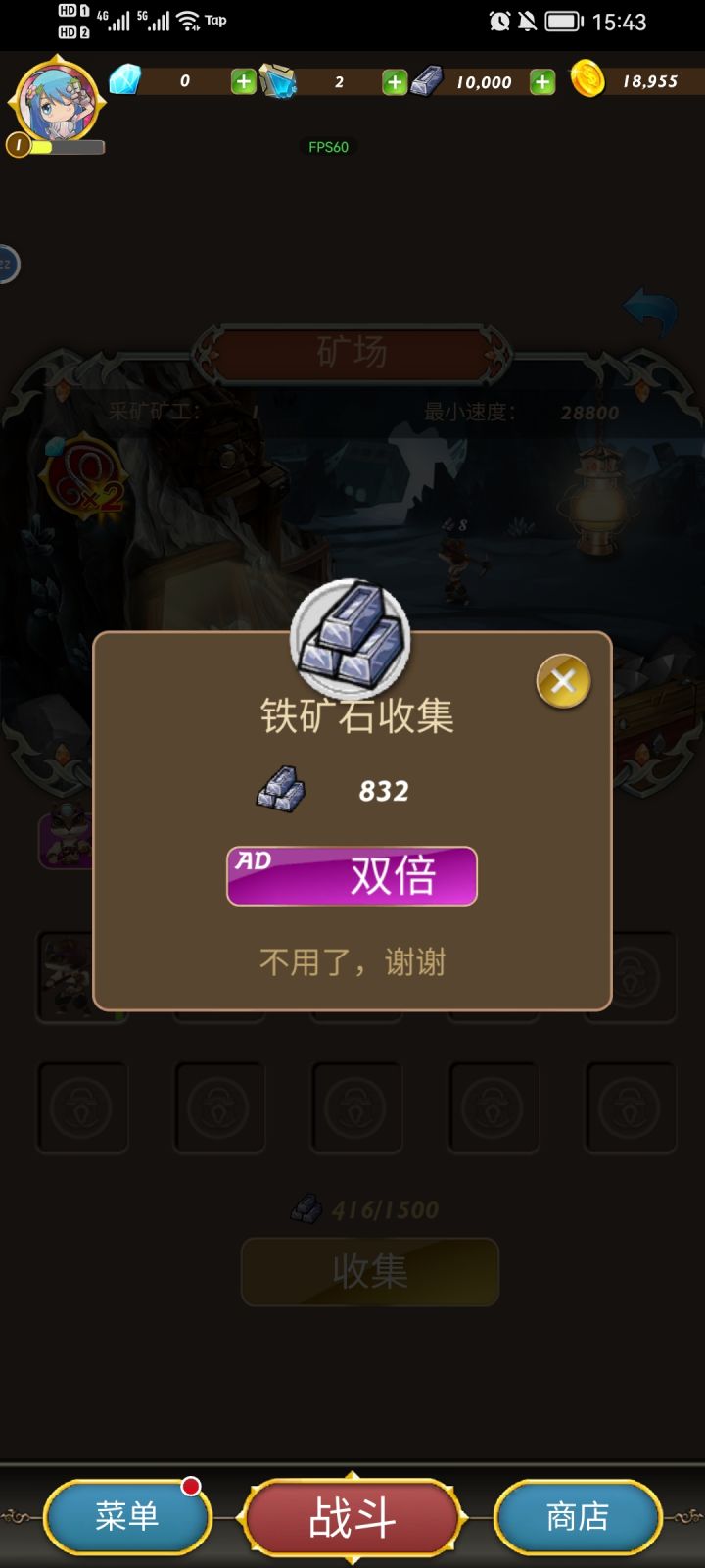 🎮可玩性:游戏有三个角色需要养成,装备,技能等等,想要体验好点可能需要看点广告。随着等级提高逐渐解锁雕像、锻造、魔法水晶等功能。前期可能会很无聊。