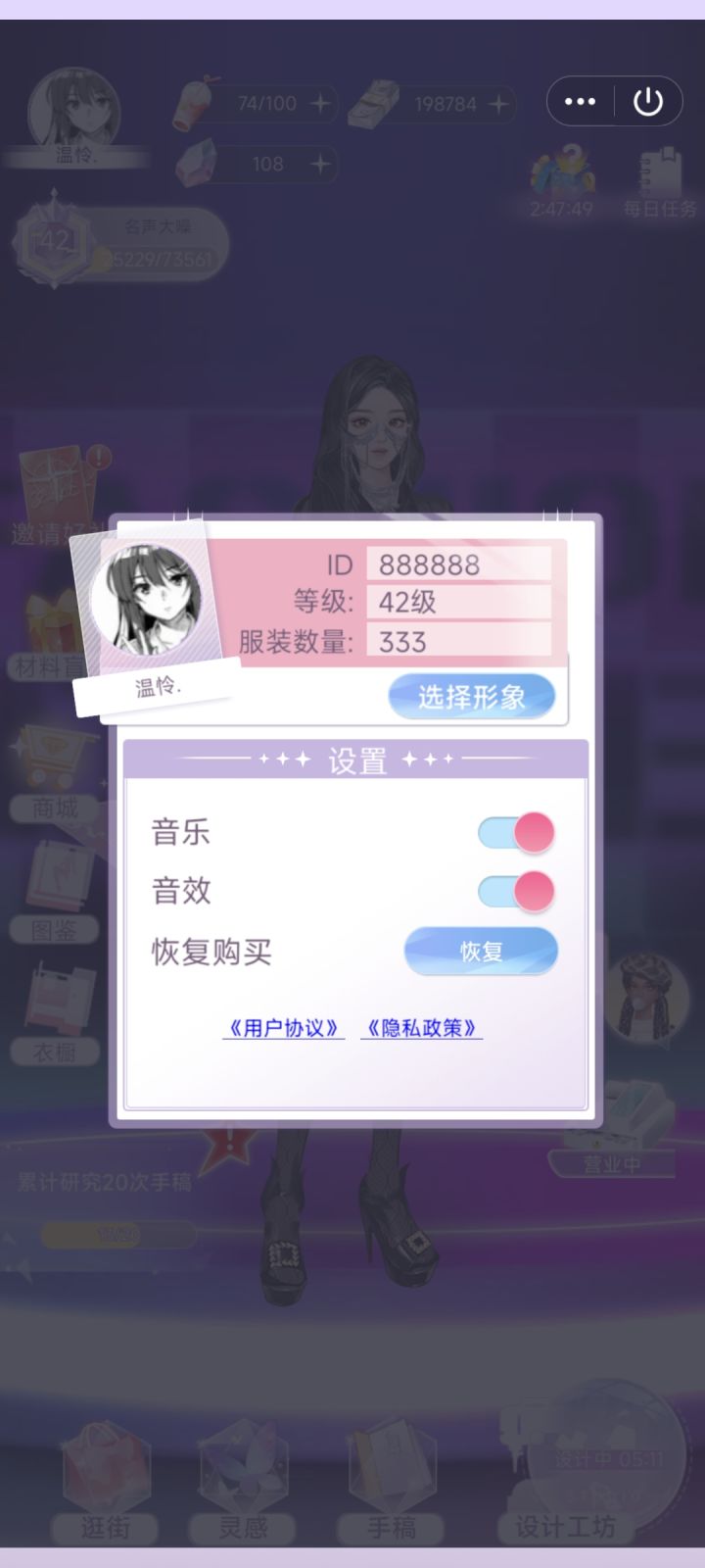 特地从QQ小程序来评论😂😂😂,感觉还不错 可以当做一款休闲小游戏来玩 ,里面的服装立绘什么的我都还挺喜欢的 ,希望能多多出新的衣服,