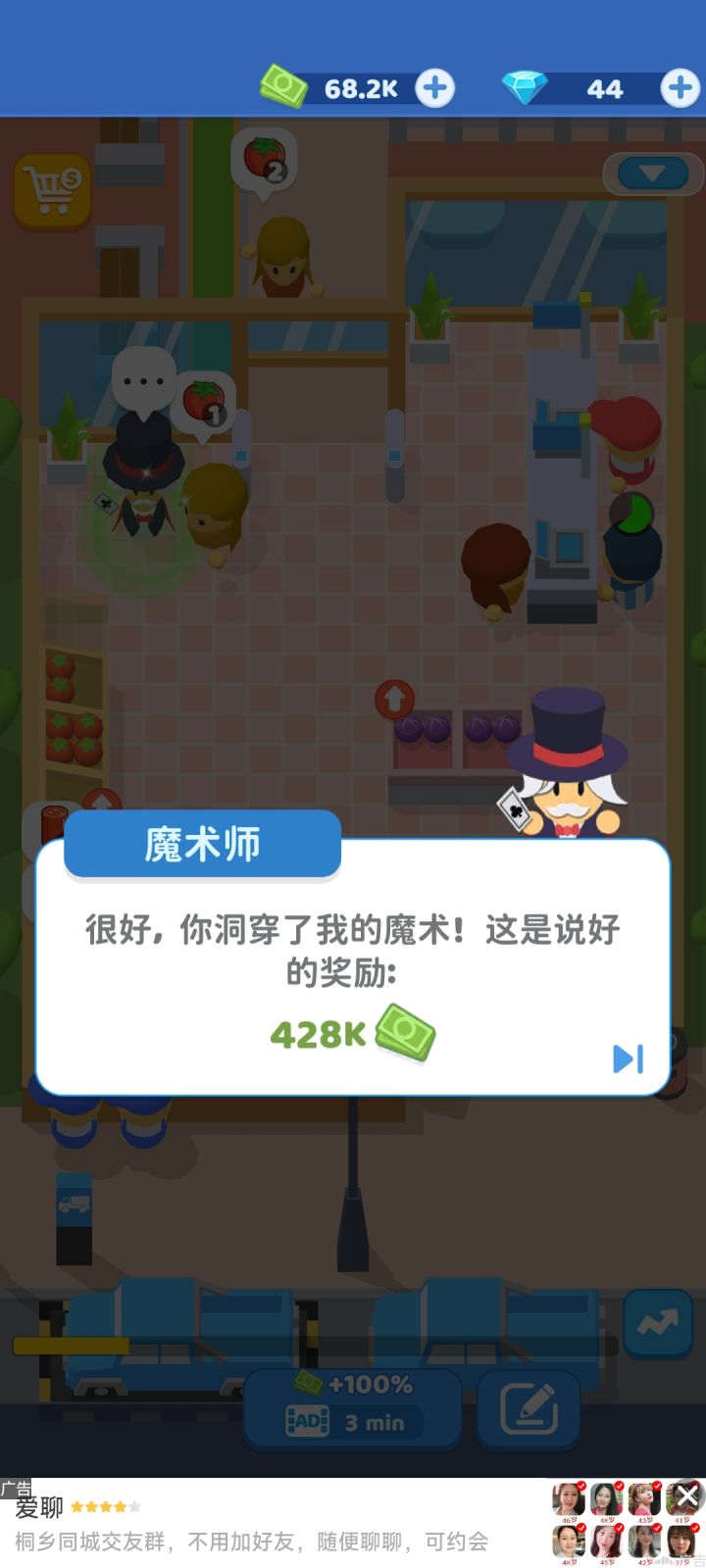 还行吧,我才玩到小超市,最高售卖的货物才几百ac升级却要几百ad卡了我一天还没过关,我希望升级金额能再合理点,难道是后面没关卡了吗……就这一关已经把我的热情耗掉差不多了,那个送钱的也只送几十ad,升一级要几百ad,就算看了广告也不能很快完成真的离谱😅