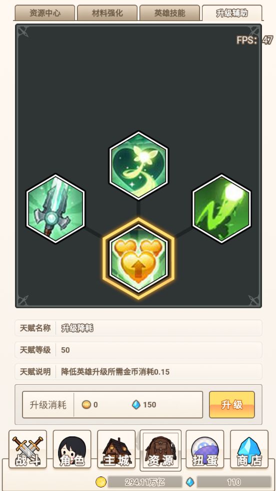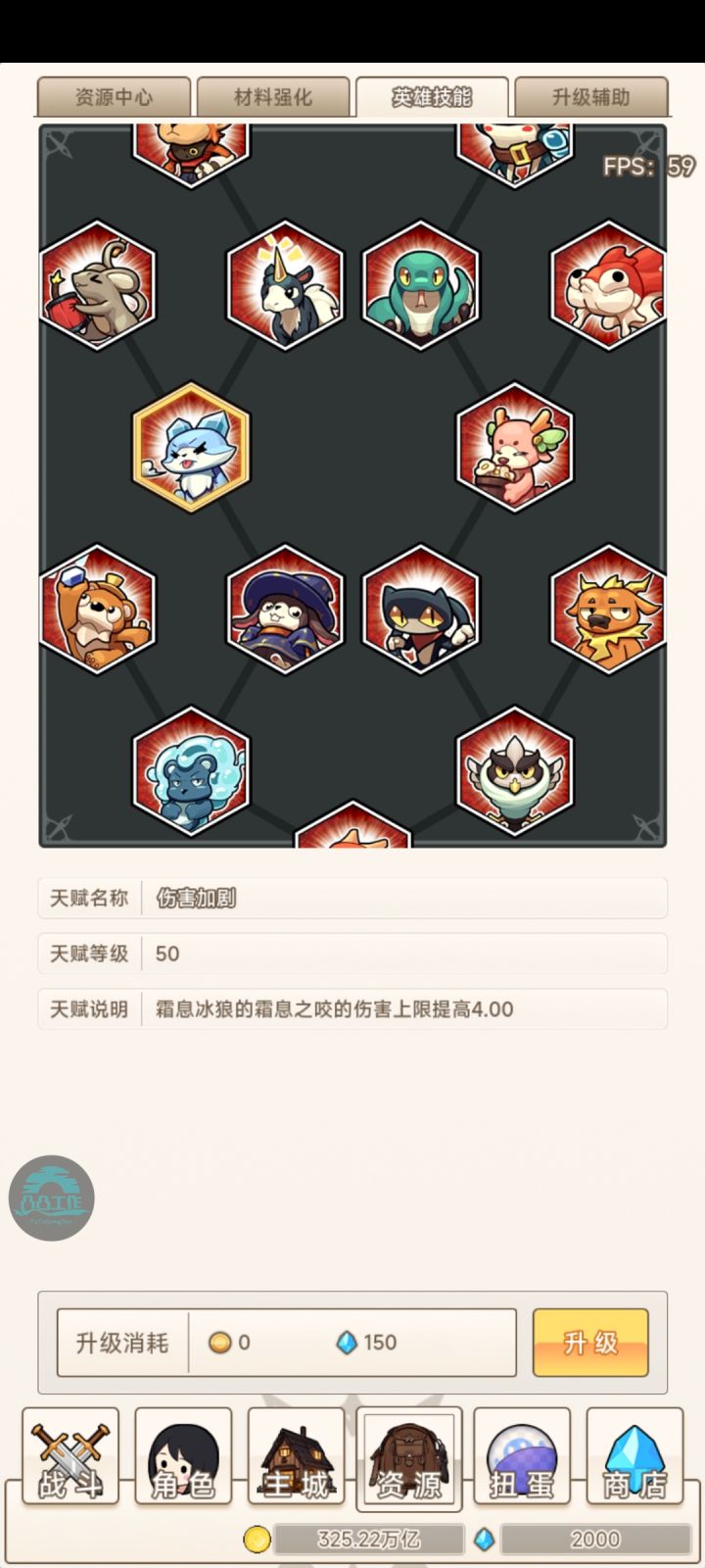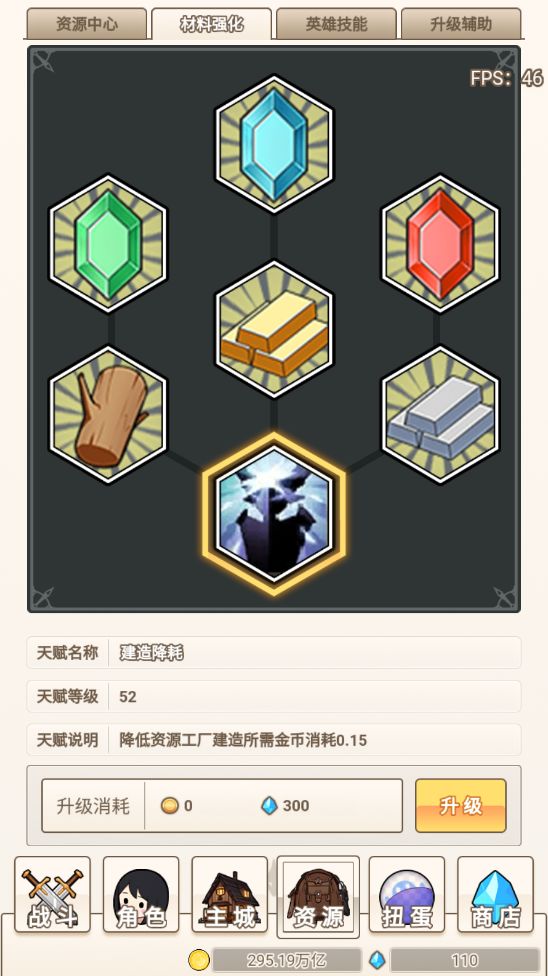 开局先把礼包码都领了啊,送的东西还是挺多的。首先拿领的砖石把升级辅助里面的升级降耗拉满,材料强化的建筑降耗拉满,别看减的少,但细水长流能省很多。狼很强,但是得一千级之后才能发力,前期就先升那些金币英雄,搞500级然后搞狼。资源英雄会卡资源升的不如金币游戏快,但是金币英雄除了熊都不行,金币的主升熊,资源的主升狼跟猴,这几个升不动的时候就升一下其他的英雄。资源中心的工厂这个前期还够用,但是后面资源需要