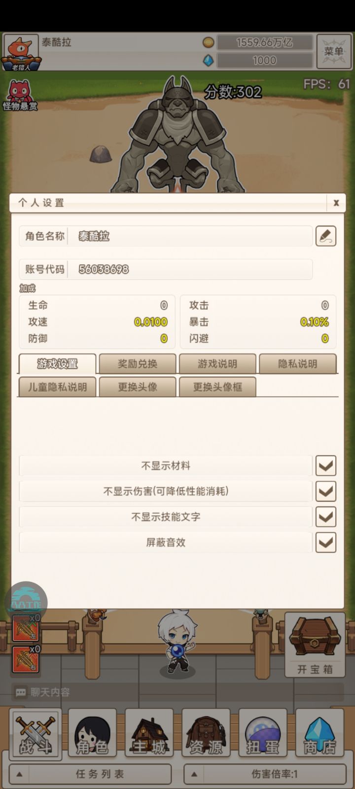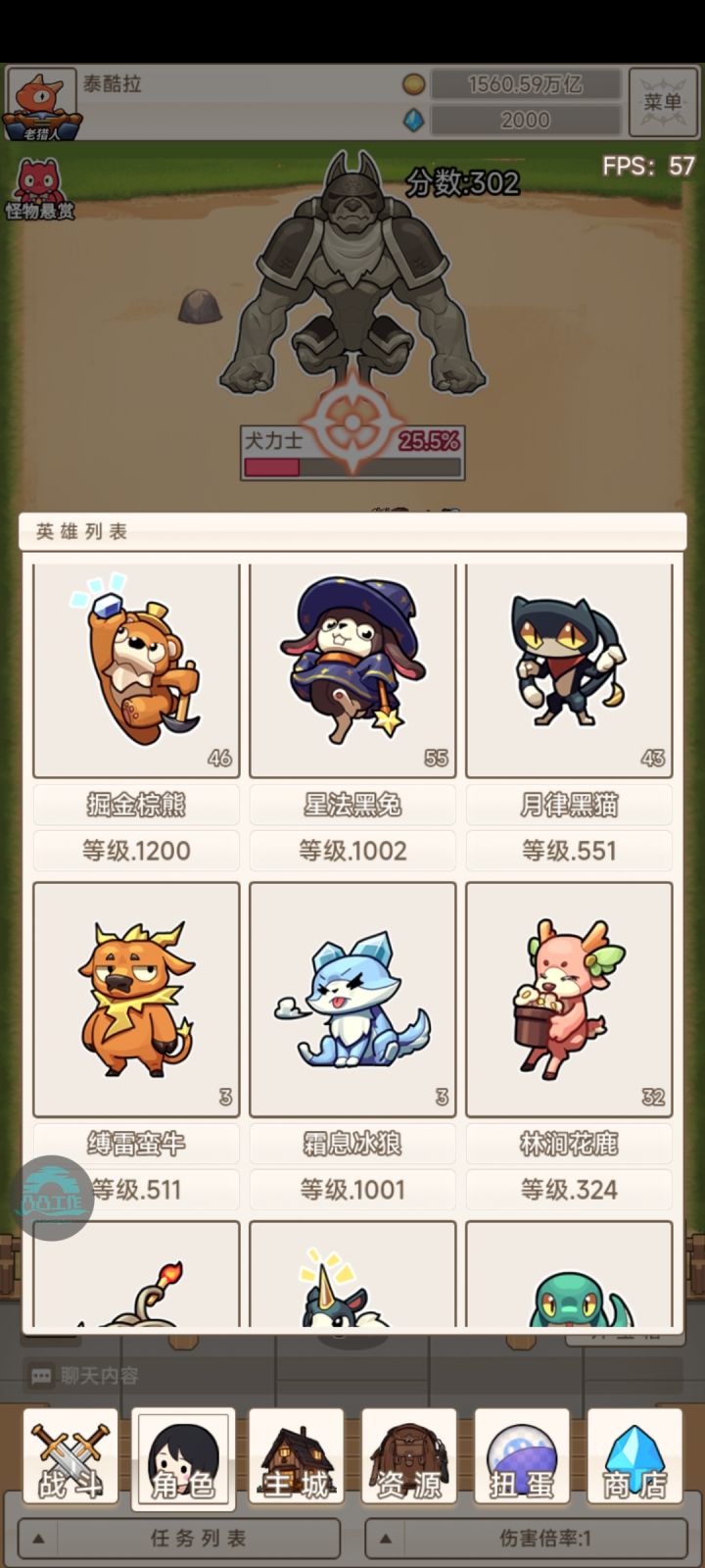 玩这游戏几天了 走了一点弯路 现在给入手朋友一点建议 首先 开局 兑换码进群公告和好评及公众号 游戏浮窗获取 然后用领的奖励去抽角色 前期养第一个幼龙和熊 及狼 幼龙先500可以放着装备带加间隔多的(幼龙等级及攻速影响装备掉落等级及频率) 熊在狼1000级前打金 1000级后狼就起飞了 (狼到1000就不用养了)记得熊和狼的技能要点满(在资源第三栏那里)。至于其他游戏可能要宝物解锁才能起飞 所以不