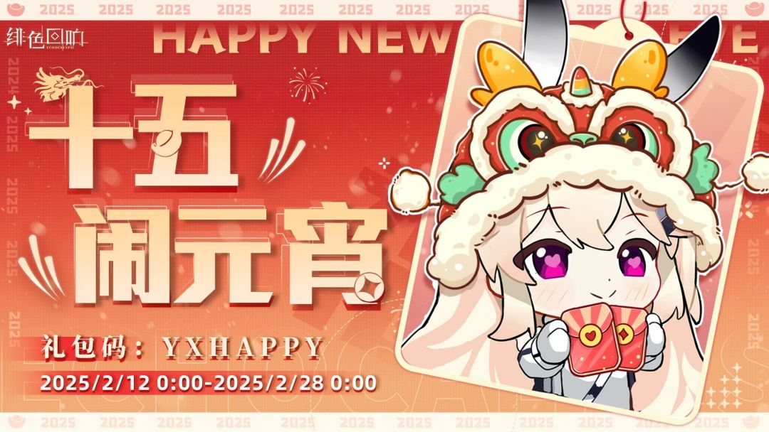 当雪白糯米团溢出芝麻心,兔子灯笼被再次点亮。 在璀璨花灯与皎洁明月的交映中,愿所有牵挂都化作圆满~ 元宵节当然少不了兔子的福利环节啦,让我们一起来闹元宵~ 祝所有唤醒者幸福绵绵,元宵快乐! ▼礼包码 【YXHAPPY】 ▼礼包码内容 【钻石】*150+体力道具【美味汤圆】*4+【特殊任务数据】*20+【金币】*250,000 ▼兑换时间 2025/2/12 0:00~2025/2/28 00:0