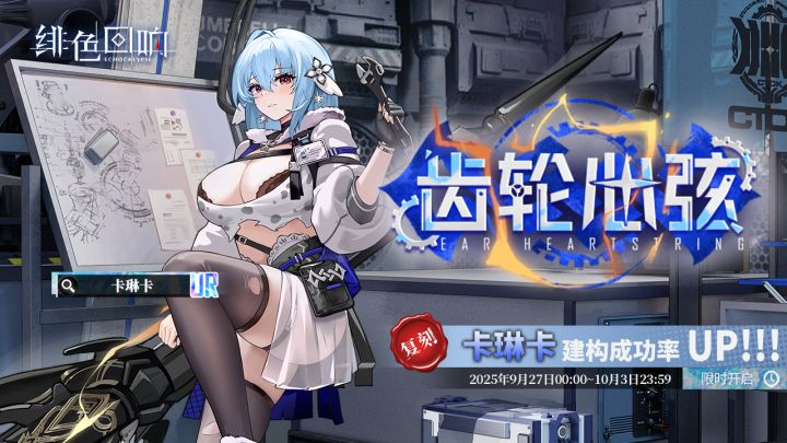 尊敬的各位唤醒者:共鸣者「卡琳卡」概率提升建构「齿轮心弦」即将限时返场!▼开放时间2025年9月27日00:00 ~ 2025年10月3日23:59▼开放对象权限等级到达7级的唤醒者共鸣者「卡琳卡」共鸣者建构返场期间,「卡琳卡」专属共鸣武装「变压器」将同时限时UP!▼开放时间2025年9月27日00:00 ~ 2025年10月3日23:59▼开放对象权限等级到达44级的唤醒者感