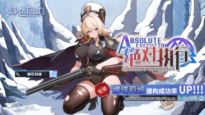 尊敬的各位唤醒者:共鸣者「娜塔莉娅」概率提升建构「绝对执行」即将限时返场!▼开放时间2025年8月23日00:00 ~ 2025年8月29日23:59▼开放条件 权限等级到达7级的唤醒者共鸣者「娜塔莉娅」建构返场期间,「娜塔莉娅」专属共鸣武装「施令」将同时限时UP!▼开放时间2025年8月23日00:00 ~ 2025年8月29日23:59▼开放对象 权限等级到达44级的唤醒者