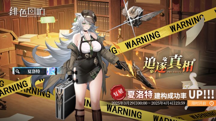 「夏洛特」共鸣者建构「追逐真相」限时返场!▼开放时间2025年3月29日00:00 ~ 2025年4月4日23:59▼开放条件 权限等级到达7级的唤醒者共鸣者「夏洛特」建构返场期间,「夏洛特」专属共鸣武装「221B」将同时限时UP!▼开放时间2025年3月29日00:00 ~ 2025年4月4日23:59▼开放对象 权限等级到达44级的唤醒者