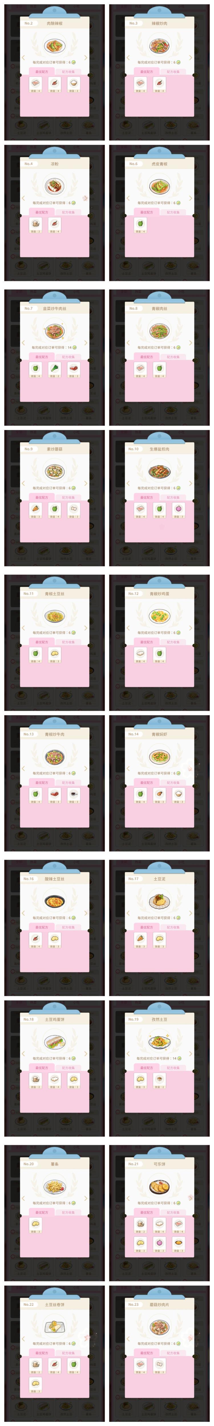 当舞台到达15-4将解锁厨房玩法,在这里进行菜肴研究制作和完成订单,下面可以查看不同食材的搭配,还有部分由于食材未有获取方式,后续会更新在文档上 更新链接(含隐藏食材): 长图↓↓↓(保存观看,不清晰可以看↑↑链接)