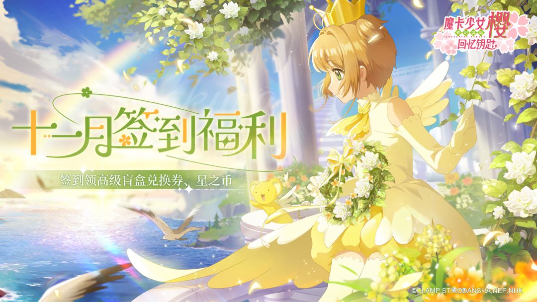 入梦者们大家好,这里是忆酱! 忆酱为大家带来了新的签到福利,一起来看看吧~ ✦十一月签到活动✦ 连续签到即可领取友枝币、星之币、盲盒兑换券等福利! 「活动时间」11月16日10:00~11月27日23:59 「参与方式」 ✦更多福利✦ 官方微博:@魔卡少女樱回忆钥匙官方 官方公众号:魔卡少女樱回忆钥匙官方#魔卡少女樱回忆钥匙