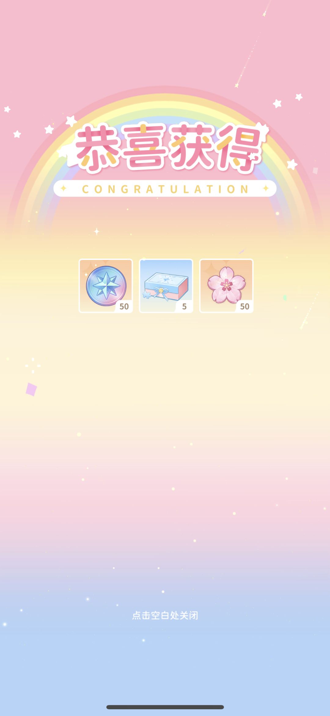 冲冲冲!新的签到活动来啦!内含高级盲盒券抽奖券哟,哦吼哦吼哦吼! 第一天:星之币 第二天:好感度礼物 第三天:友枝币 第四天:碎片宝箱 第五天:普通抽奖券x10 第六天:樱花币哦!!! 第七天:高级盲盒券X5!!! 冲冲冲冲!#魔卡少女樱回忆钥匙