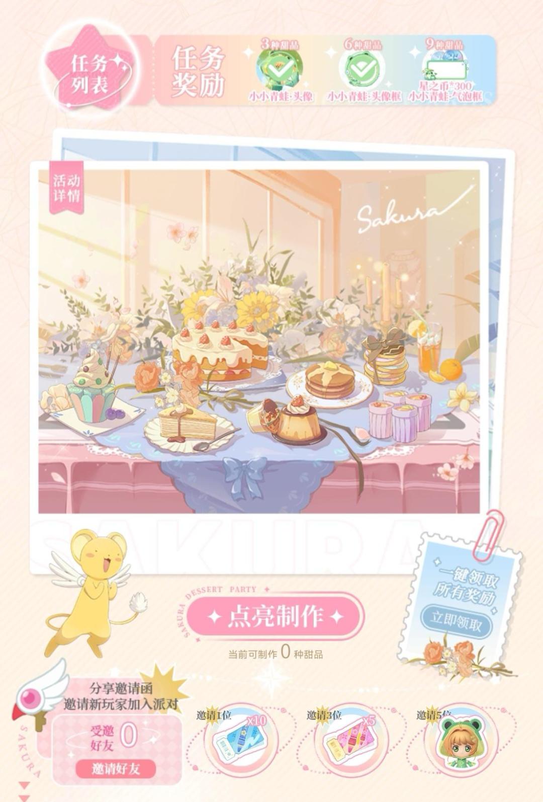 兑换码(头像-设置-兑换): 小樱666 小樱777 小樱888 sakura666 sakura000 好好吃饭 解锁梦境旅程 限定小樱娃娃 xy888 mksnysy 坠入甜梦 小樱之旅正式启航 欧气满满 好运连连 小青蛙活动获取方式: 链接点进去完成任务即可获得 头像、头像框、聊天气泡、盲盒券、限定小青蛙小小樱 《魔卡少女樱回忆钥匙》手游现已上线!为我助力获得限定小小樱盲盒,一起来收集全世界